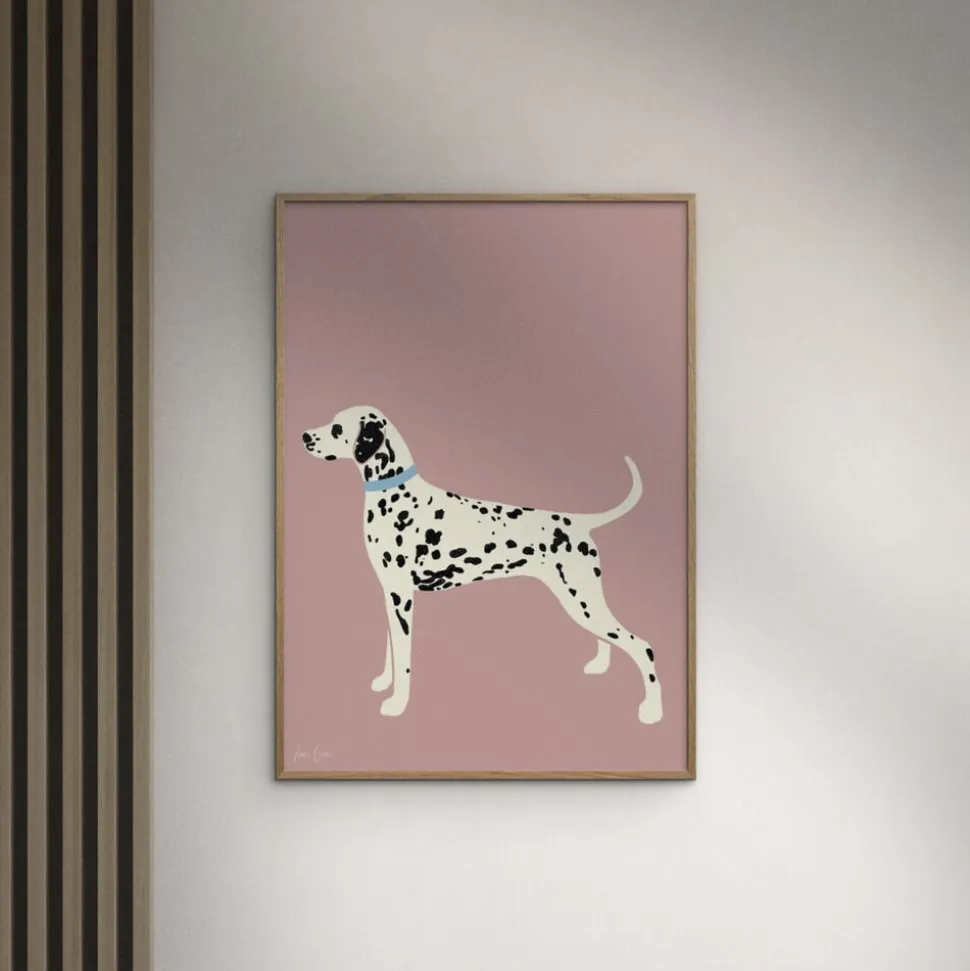 Gør din væg levende med My Friend, en elegant og charmerende kunstplakat af Inez Gori. Denne minimalistiske illustration af en dalmatiner p en varm, støvet rosa baggrund kombinerer enkelhed og elegance og passer perfekt til moderne hjem.