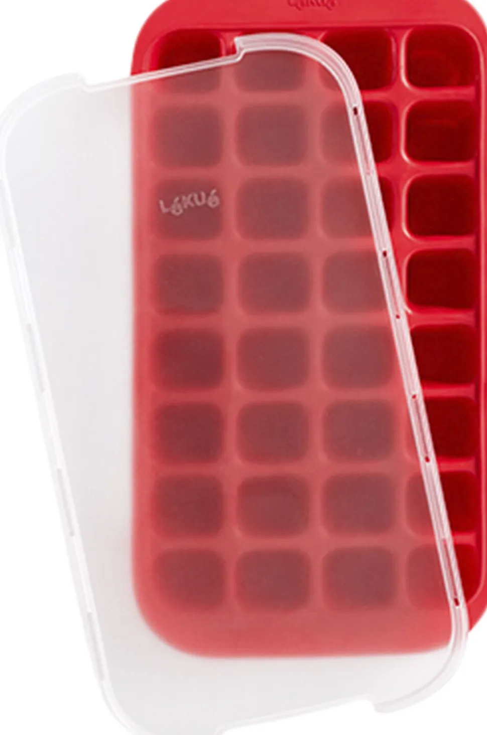 32-kubet isterningebakke lavet af fleksibel gummi med låg. Ingen lugte takket være låget. Nemt at få ud.