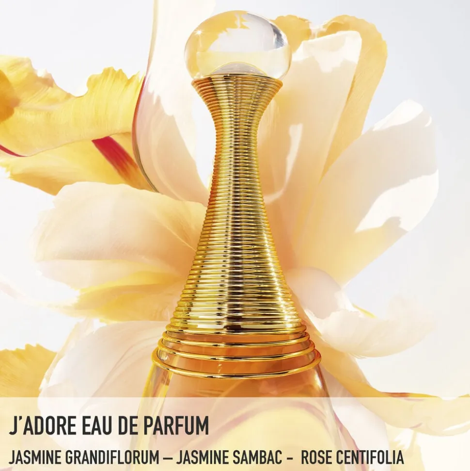 “”J’adore er en ekstraordinær parfume, fordi den formår at være en original signaturduft, der appellerer til de fleste.Sensuel uden at blive for tung. Kompositionen forener modsætninger, hvilket forvandler den ikoniske blomsteragtige duft til et dragende, unik og mystisk ensemble. J’adore finder på en blomst, der ikke eksisterer et ideal.””