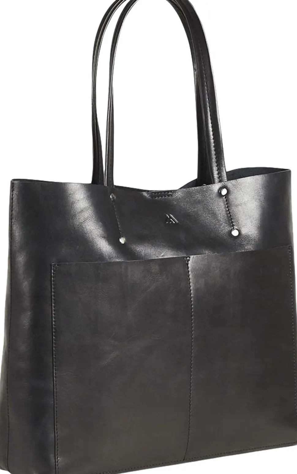 JaydaMBG Shopper fra Markberg. Tasken er i vegetabilsk indfarvet læder, baseret på naturlige materialer. Lækker taske med to lommer på fronten. Tasken har lynlåslomme indvendig og lukkes med magnet. To skulder hanke. Ingen indvendig for.
