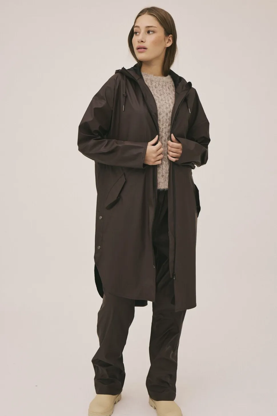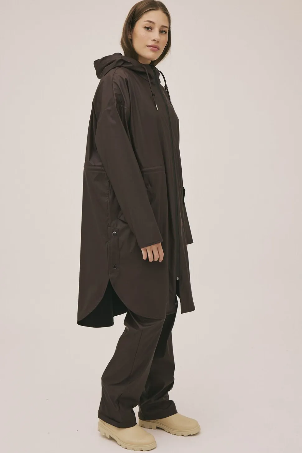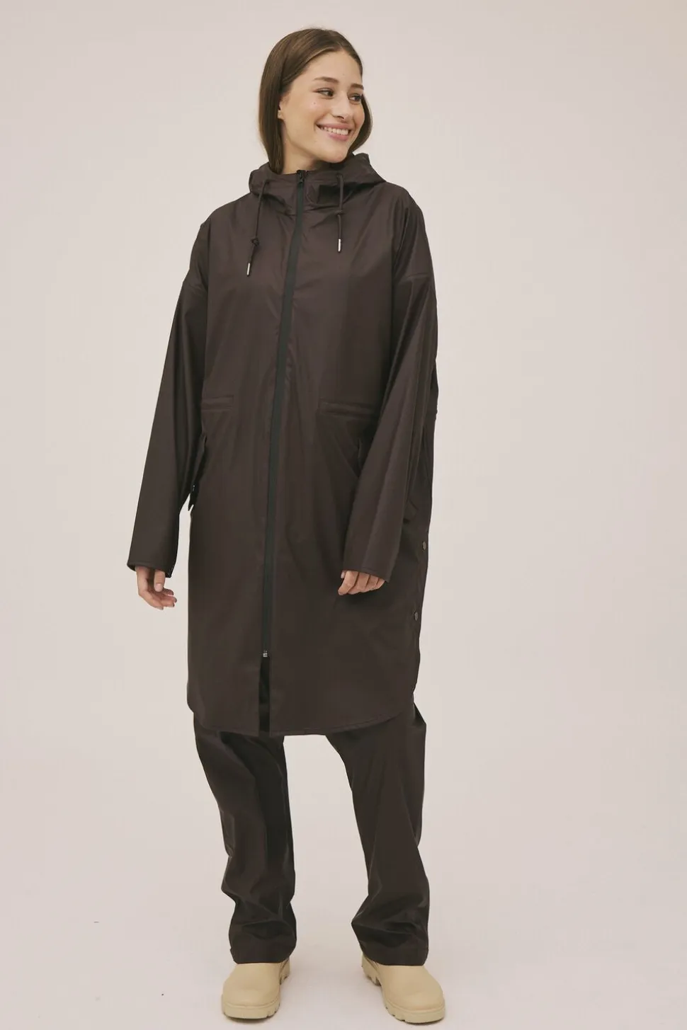 Regnjakke fra Magasin du Nord Collection i den lækreste kvalitet af 50% genanvendt polyester med GRS-certificering. Jakken har lynlåslukning på fronten, lange ærmer, en snøre i hætten, sidelommer, elastiksnøre i taljen, slids med trykknapper i siderne samt en vid pasform. En skøn regnjakke i den lækreste kvalitet.
