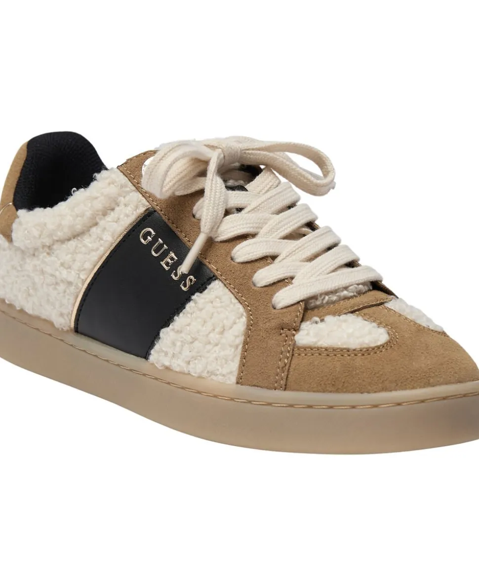 Sneakers fra GUESS, der består af en kombination af flere forskellige kvaliteter, der tilsammen giver en rigtig flot effekt. Derudover er skoen enkel i modellen med snørebånd på fronten samt synings- og logodetaljer på siderne. En cool sko i en lækker kvalitet.