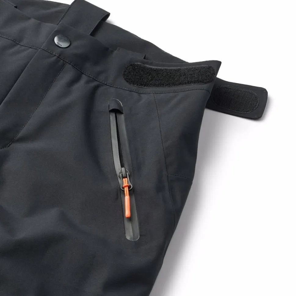 Disse sorte overtræksbukser fra Molo er lavet i genanvendt polyester. Bukserne har trykknap- og lynlåslukning, udvendige, justerbare velcro-stropper, bælte stropper til Molos seler (ekstra tilbehør), justerbar benåbning med snefang og ekstra forstærkning mellem benene. Der er vandtætte lommer, refleks bagpå, fleece foret udsatte steder og vatteret med 3M Thinsulate.