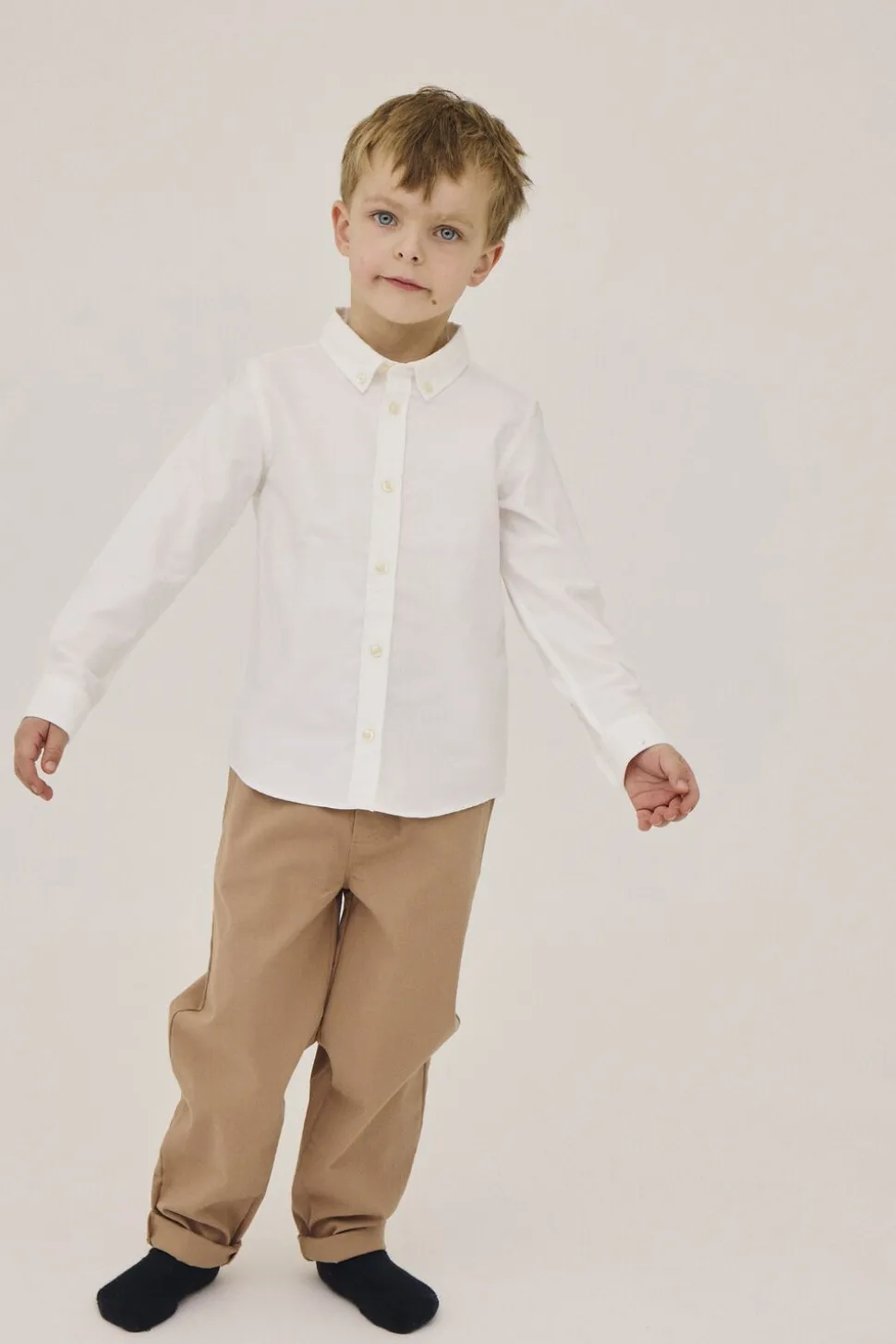 Smarte bukser fra BAKITO by Magasin i en blød, økologisk GOTS-certificeret bomuldskvalitet. Bukserne er enkle i modellen med lynlås- og trykknapslukning på fronten, justerbar elastik i taljen samt sidelommer og en baglomme. Et par seje og komfortable bukser af den bedste kvalitet. Fås i flere farver.