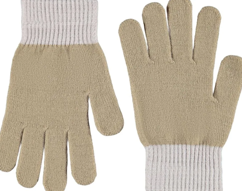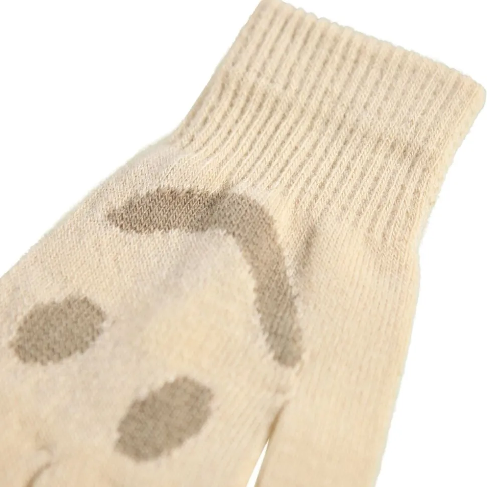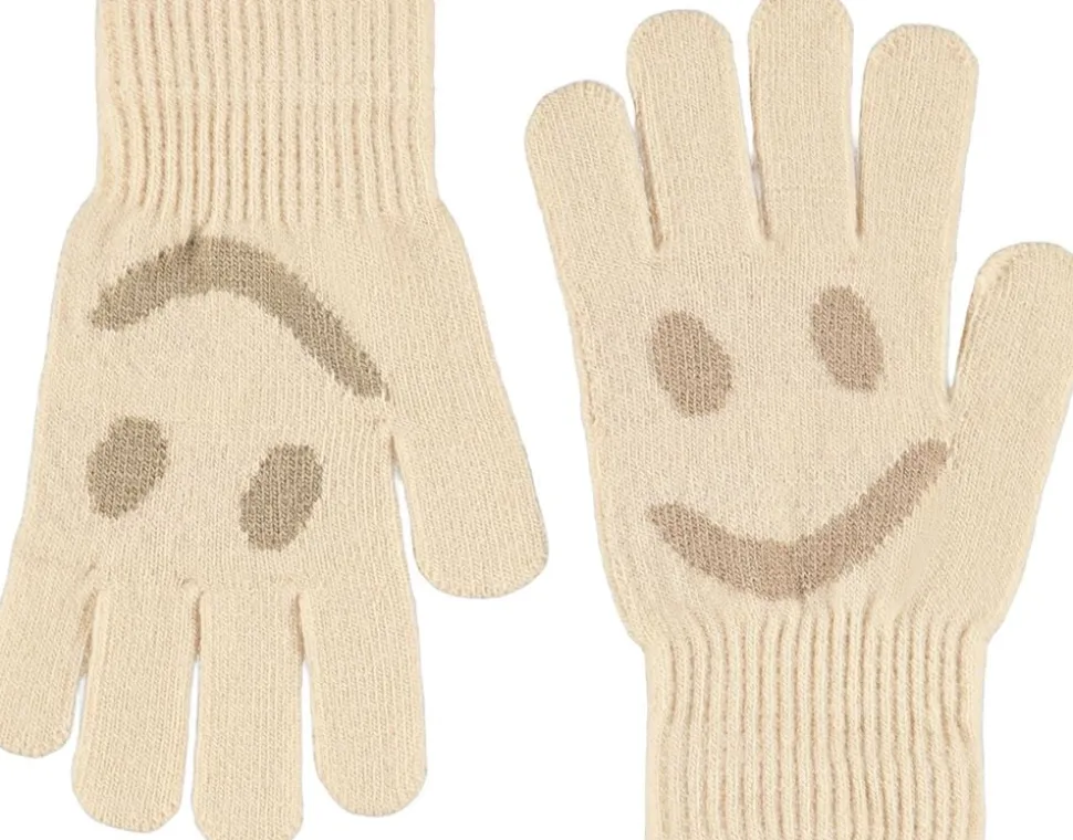 creme farvet ribstrikket hue fra Molo med ombuk og broderet smil i sort.