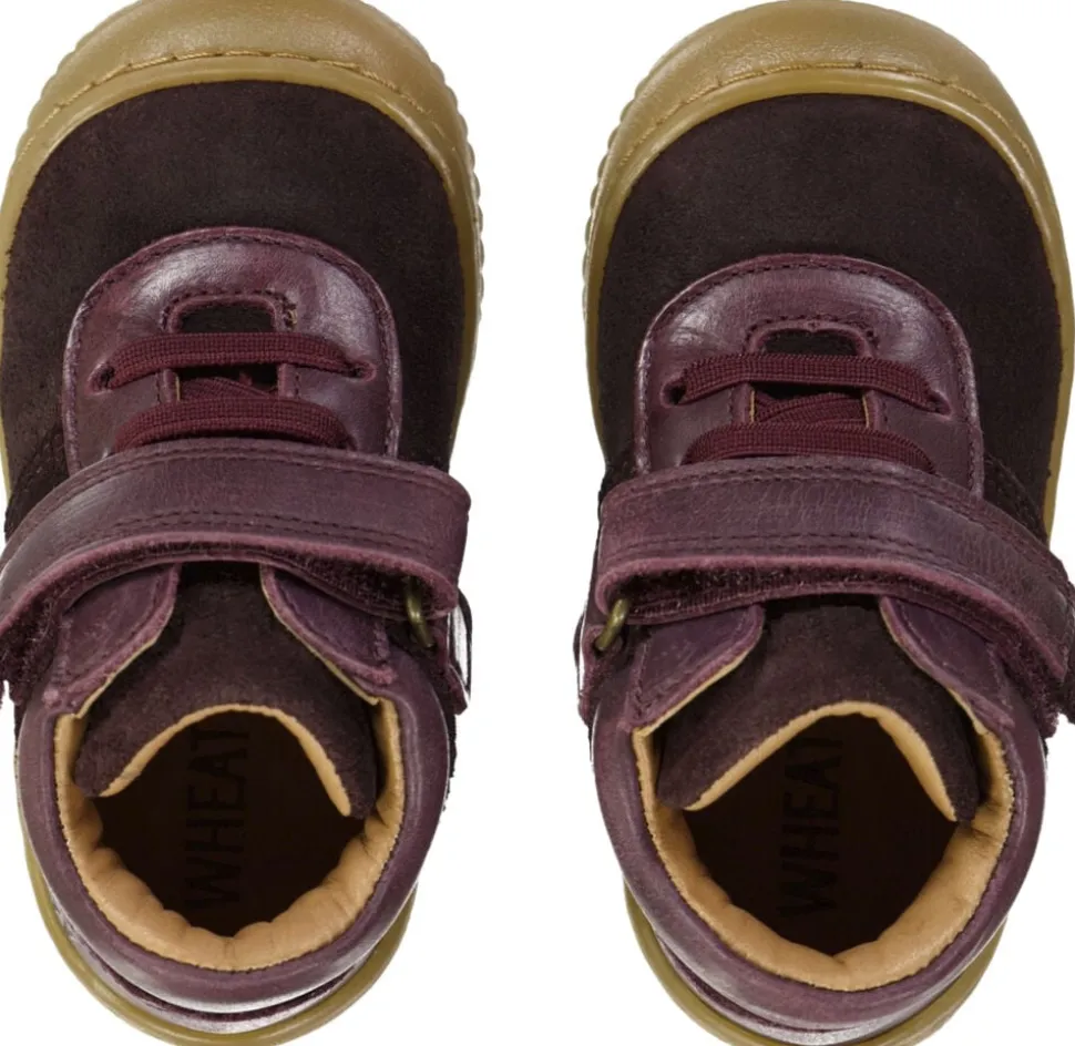 Wheat Fodtøj Behagelige pre-walkers med elastik- og velcrolukning til det mindste barn. – Elastik- og velcrolukning Wheats pre-walkers er lette, fleksible og behagelige for dit barn at bevæge sig rundt i. De er designet til at beskytte de små fødder, der skal bevæge sig ud på eventyr for første gang. Denne sko har elastiksnørebånd samt velcrolukning, hvor begge funktioner gør det nemmere at give barnet skoen på. Pre-walkeren er lavet i krom- og metalfrit garvet læder og ruskind til dit barn. Læder, der er garvet uden krom og metal kan få en skøn patina over tid. Blød latex indlægssål beklædt med krom- og metalfrit garvet læder. Latex er et naturprodukt, der er åndbart og fleksibelt med en trampolineffekt for behagelige skridt. Ydersålen er lavet af TR gummi, som er et meget holdbart og skridsikkert materiale. Skoens sål er designet til at dække tæerne på snuden for at give den mest optimale beskyttelse. De er normale i størrelsen og har et fast greb om dit barns fødder. Anbefalet voksetillæg: 10-15 mm Vejl. indvendige mål: Str. 19 = 12,3 cm Str. 20 = 13,0 cm Str. 21 = 13,7 cm Str. 22 = 14,2 cm Str. 23 = 14,9 cm Str. 24 = 15,8 cm Str. 25 = 16,4 cm Str. 26 = 17,0 cm Sammensætning: Yder materiale: Ruskind og læder Foer: Krom- og metalfrit garvet læder Indlægssål: Blød latex indlægssål belagt med krom- og metalfrit garvet læder Yder sål: Genanvendt TR gummi