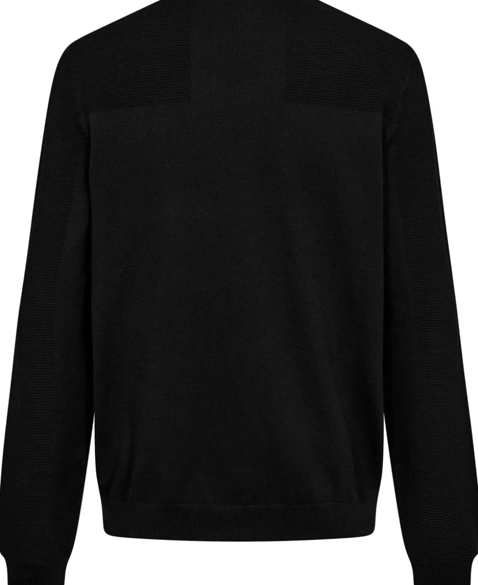 Denne BOSS herretøj-sweater i almindelig pasform er blandet med merinould og stræk for ekstra komfort for åndbar varme med bevægelseskomfort. Den har også fugtstyring og strukturerede blokeringsdetaljer
