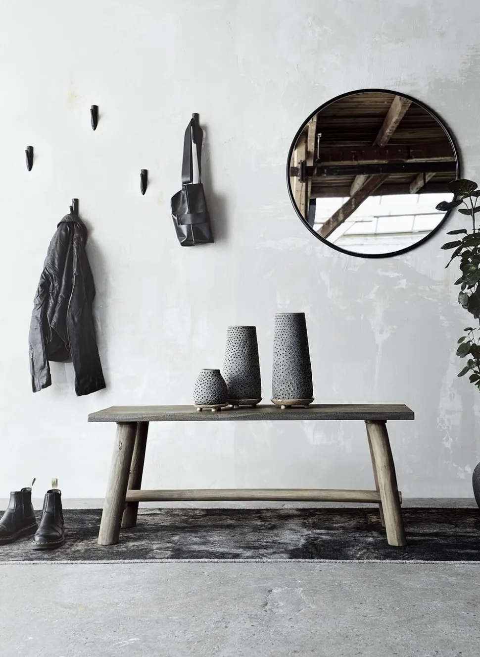 Det smukke sorte støbejerns materiale tilføjer en moderne kontrast til det skandinaviske hjem.