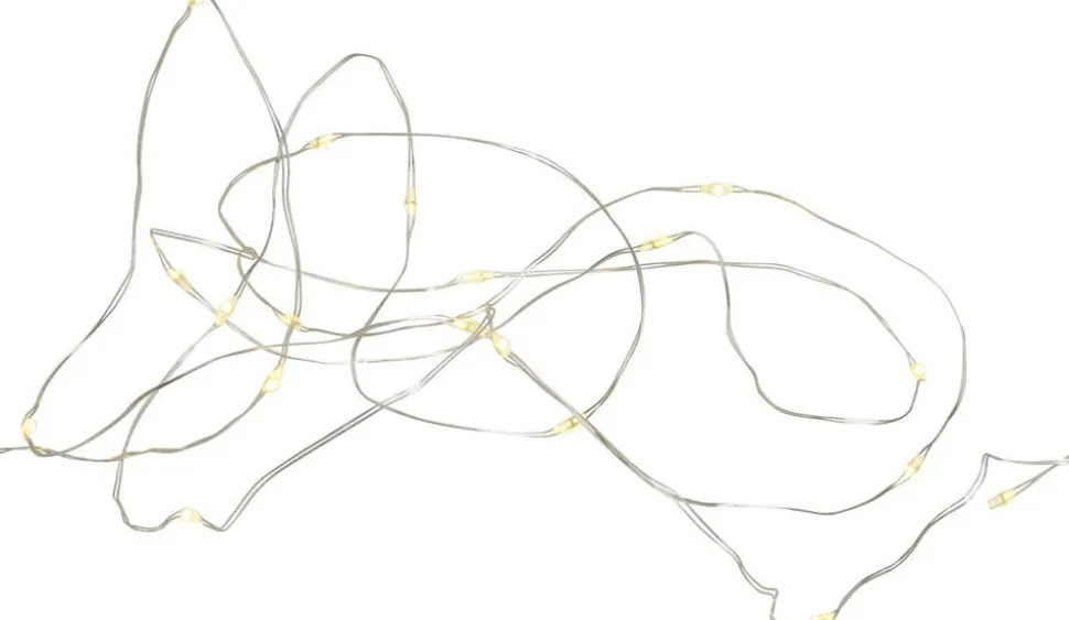 Sirius Knirke Lyskæden er lavet med en fin sølvtråd der er sammen med den transparente ledning giver lyskæden et flot udtryk. På kæden er der 20 meget små LED lys. Meget fin kæde til alverdens dekorationer, som lyseffekt i de blomsterdekorationer, eller måske som borddekoration til fest og brylluper. Kæden er 1,9 meter lang, og har et varmt naturligt lys. Lyskæden er batteridrevet. Batterier medfølger ikke.
