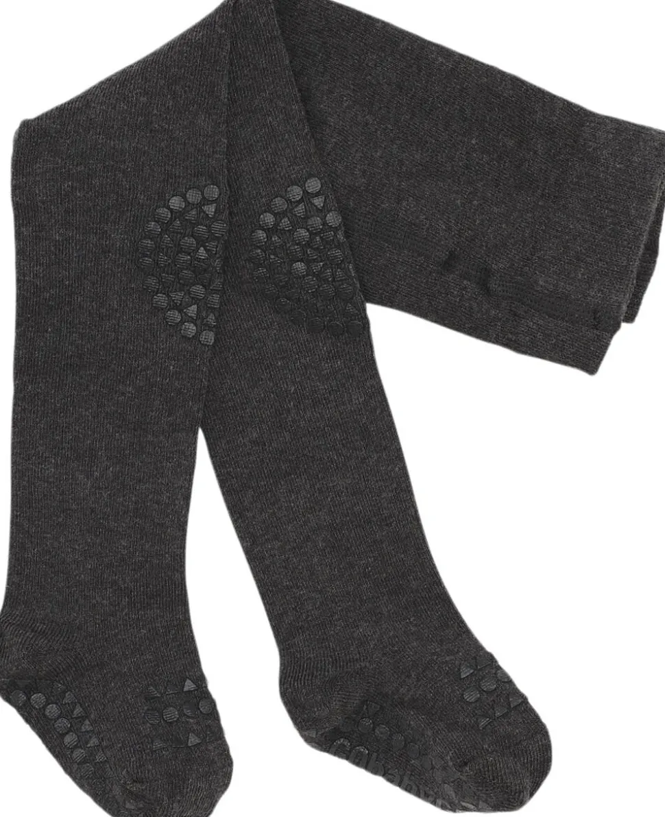 GoBabyGo kravle strømpebukser har special designede gummi dutter på knæene, under fødderne og ovenpå tæerne, så barnet ikke glider når det skal i gang med at kravle og gå.Fordele:Gummi dutter på knæ, under fødderne og ovenpå tæerne giver bedre stabilitet på glatte overfladerStyrker barnets motorik, balance og selvsikkerhedLavet i blødt bomuldsstræk med en bred ribkant, der garanterer god bevægelighed, og som føles behagelig på hudenEkstra slidstærke på knæeneTestet og godkendt for sundhedsskadelige stofferDansk design produceret i Europa og Oeko-tex Standard 100 CertificeretGiv barnet en god start når det skal i gang med at kravle og tage sine første skridt. Strømpebukserne er lavet i blødt bomuldsstræk og har en bred ribkant, der garanterer god bevægelighed, og som føles behagelig på huden. De skridsikre såler samt gummidutterne på knæene og ovenpå tæerne gør strømpebukserne ekstra slidstærke og gør det samtidig muligt for barnet at kravle rundt uden at glide på glatte overflader. Stabiliteten på alle overflader styrker barnets motorik, balance og selvsikkerhed. De skridsikre gummidutter giver støtte både når barnet kravler og forsøger at rejse sig og tage sine første skridt. GoBabyGo kravle strømpebukserne er testet og godkendt for sundhedsskadelige stoffer og er Oeko-tex Standard 100 Certificeret.Oeko-Tex Standard 100 er en garanti for, at varen er kontrolleret for indhold af sundhedsskadelige kemikalier og der kun er brugt human-økologiske tekstilvarer, som ikke har skadelig effekt på menneskers sundhed og helbred. De skridsikre silikone dutter er også godkendt af denne standard.ProduktinformationMateriale: 75% bomuld, 20% Polyamid, 5% Elastan Størrelser: 6-12 &: 12-18 måneder De skridsikre gummidutter er lavet af silikone og er fri for ftalater Vask på vrangen