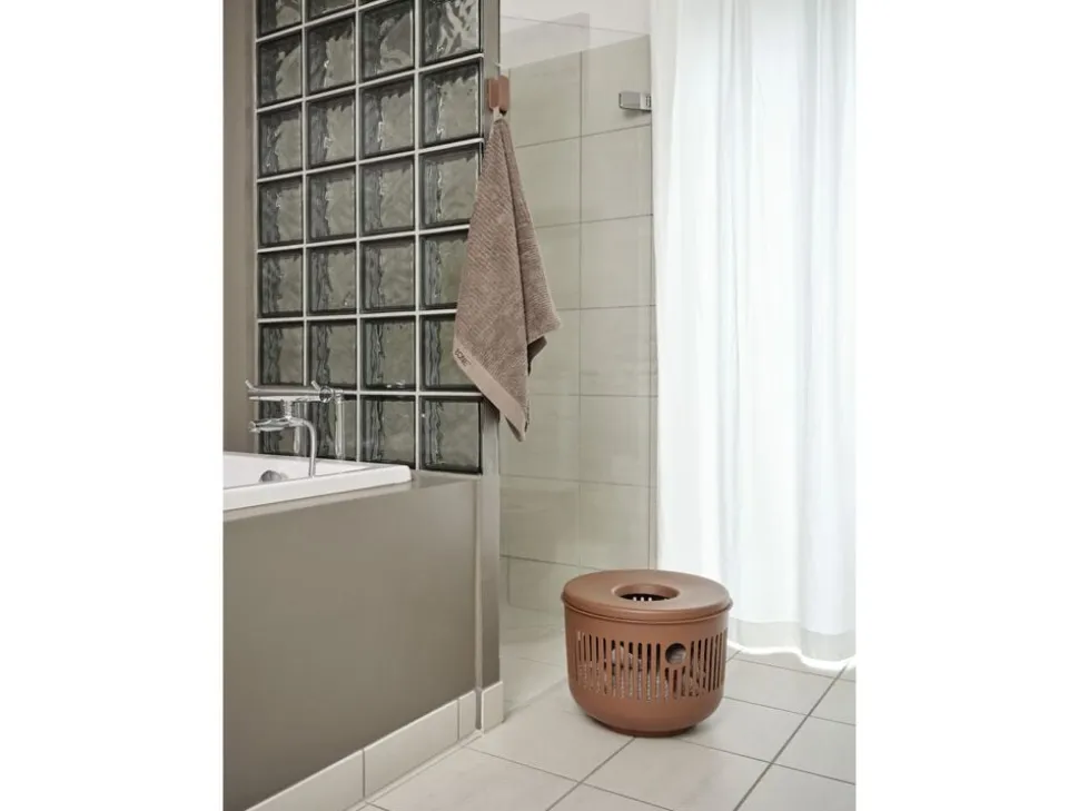 De små vægkroge kan sikkert, men diskret, bære alt fra håndklæderne til badebørsten. De runde hjørner giver krogene et venligt udtryk, og takket være skjulte beslag har de en klædelig lethed på væggen. De er lette at montere, ja faktisk er det sværeste nok at vælge farve. De små skønheder i pulverlakeret aluminium fås nemlig i hele 9 forskellige nuancer samt rustfrit mat stål.