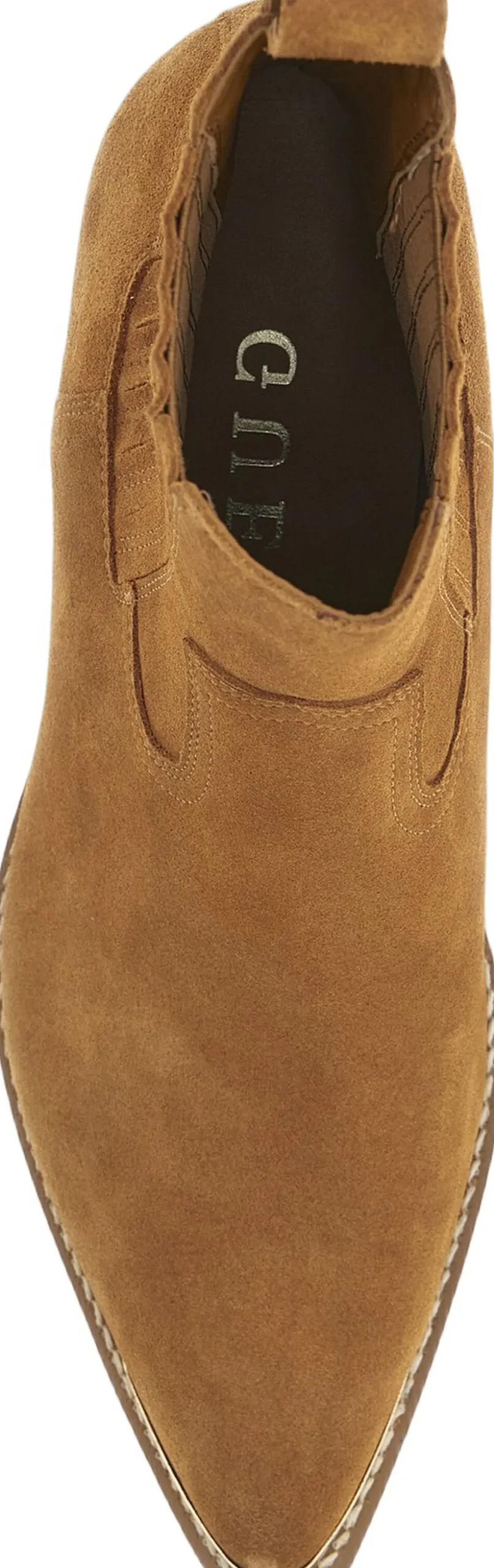 Cowboystøvle fra GUESS i en lækker ruskindskvalitet. Støvlen er enkel i modellen med western-inspirerede referencer i form af de karakteristiske syninger, en skrå, tyk hæl samt en spids snude. En super lækker cowboystøvle i en smuk kvalitet.