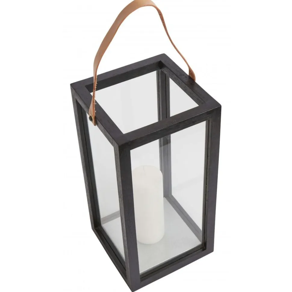 Firkantet og enkel lanterne fra MUUBS, produceret i teaktræ og glas og med læderhank. Hanken i læder giver lanternen et råt udtryk og gør det samtidig nemt og praktisk at flytte lanternen rundt. Lanternen har et nordisk udtryk med kant og fås også i natur farvet samt i en mindre størrelse.