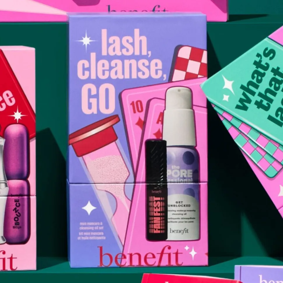 Lash, Cleanse, Go Benefits gavesæt med mini-mascara og renseolie, der giver dramatiske vipper og frisk, ren hud i to enkle trin. Det perfekte duo-sæt til dig, der elsker at skinne igennem og altid husker at rense af bagefter.