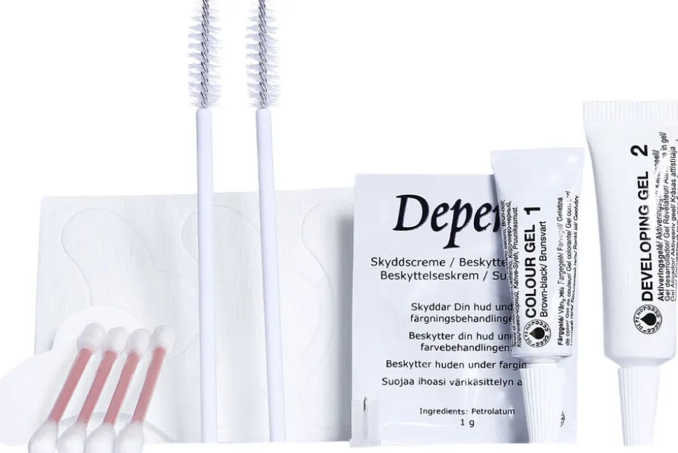 Få friske øjne uden makeup med Depend Lash & Eyebrow Colour. Dine øjne er altid naturligt markerede – lige fra morgenstunden, når du dyrker sport, soler dig eller bader. Lash & Eyebrow Colour har en ny og revolutionerende urte- og plantebaseret formel og indeholder bl.a. røllike, morgenfrue, grøn te og blåbær. Denne unikke sammensætning er blevet til et produkt, som er vandfast, skånsomt at anvende, nemt og hurtigt at påføre, og som giver en intensiv farve, der holder længe. Dette giver også et indtryk af længere vipper og mere markerede bryn. Behandlingen tager kun nogle minutter, og resultatet holder i op til 6 uger. Indholdet i pakningen rækker til 5-7 behandlinger. Fås i farverne sort, sortbrun, mørkebrun og brun.