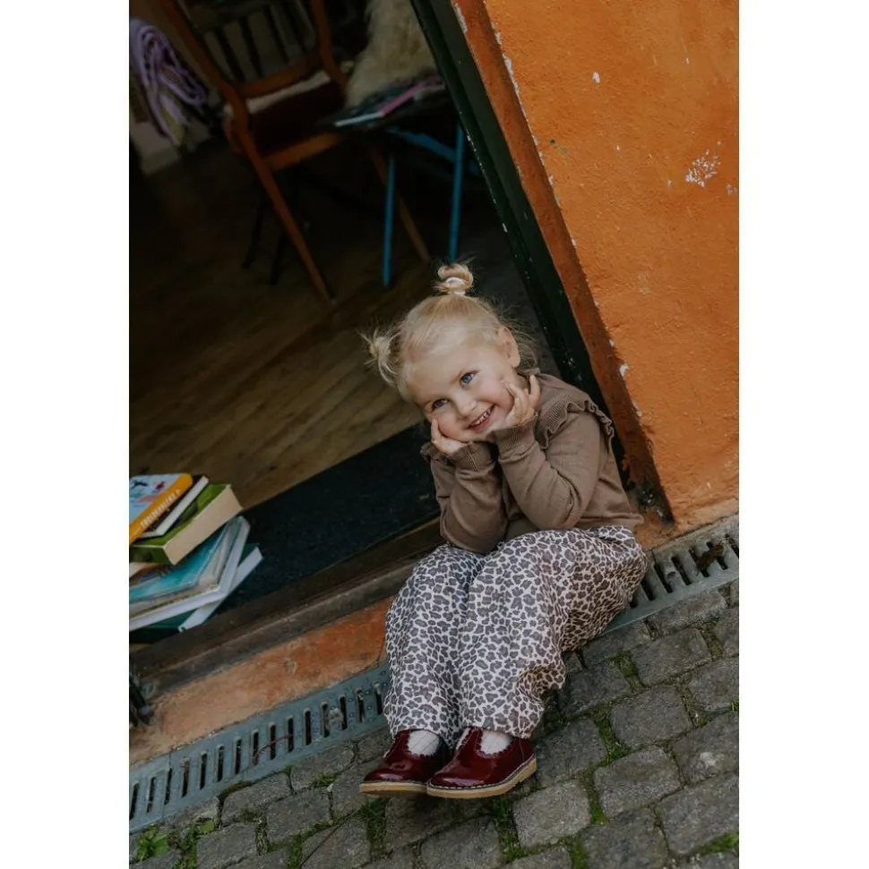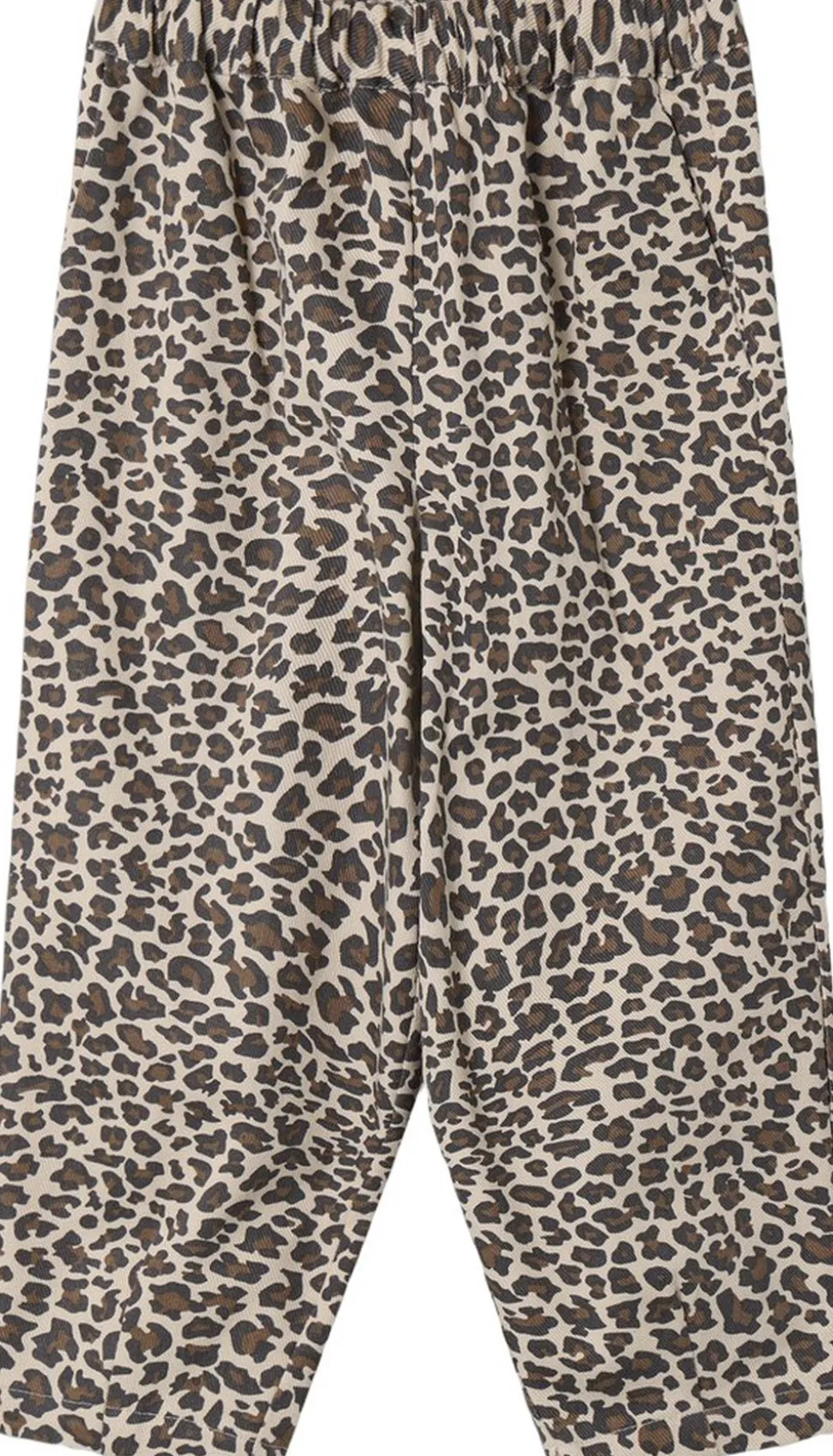Lange bukser med leopard print. Bukserne har elastik i taljen, lommer i sidesømmen til at gemme de spændende ting barnet finder på sin vej.