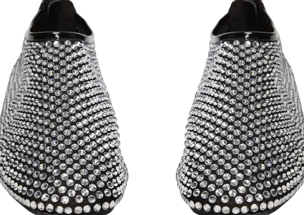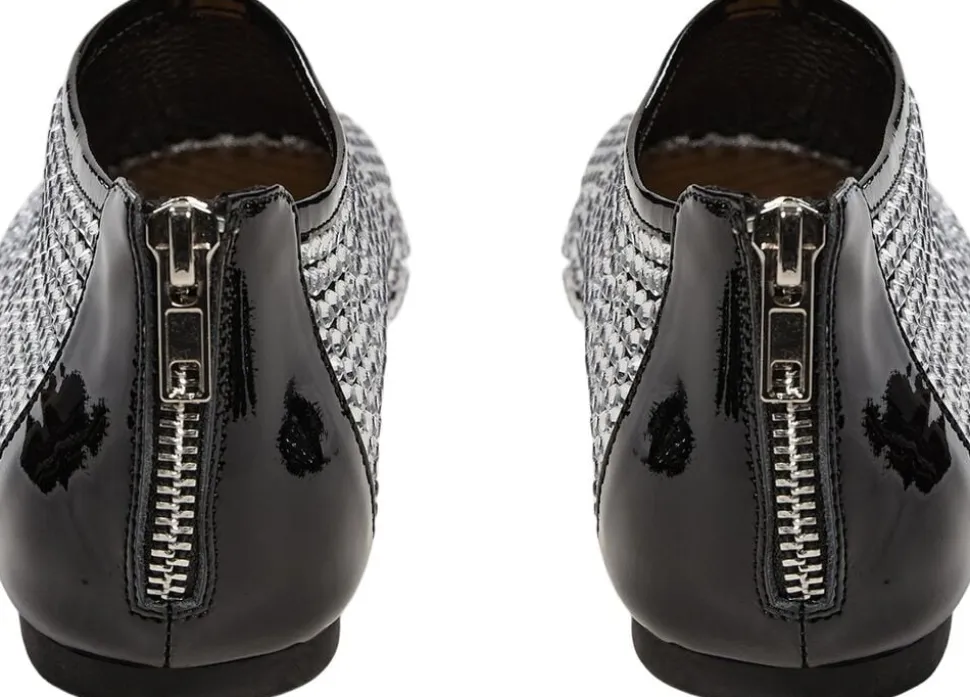 • Ballerina i mesh • Dækket med rhinsten • Rund tå • Lynlåslukning bagpå • Sort lakeret look • Flad sål • 85% mesh, 15% læder