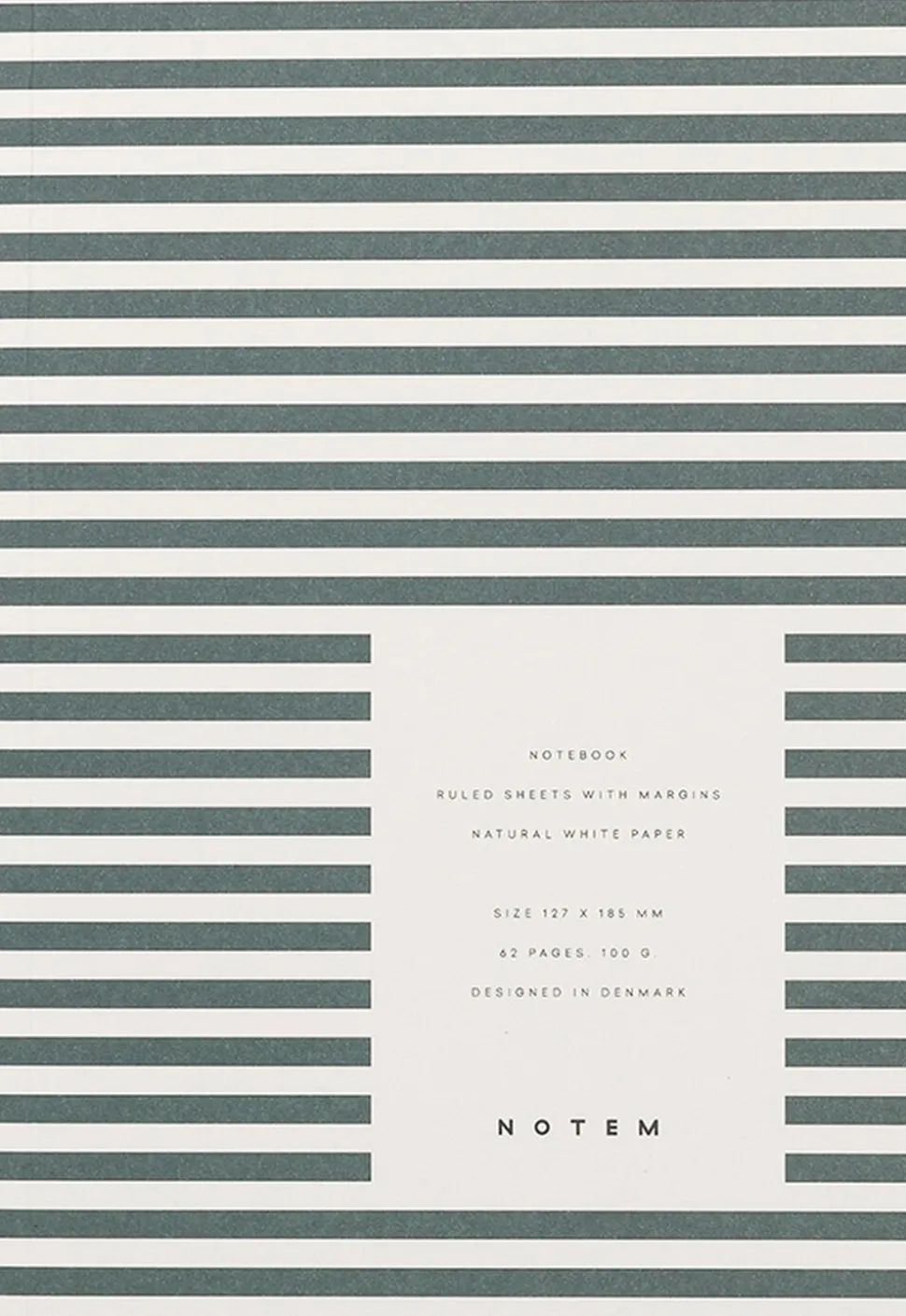 Softcover notesbog fra Notem Studio. Indhold: 64 sider, linjerede med margin. Farve: Dark green. Mål: 127 x 185 mm.