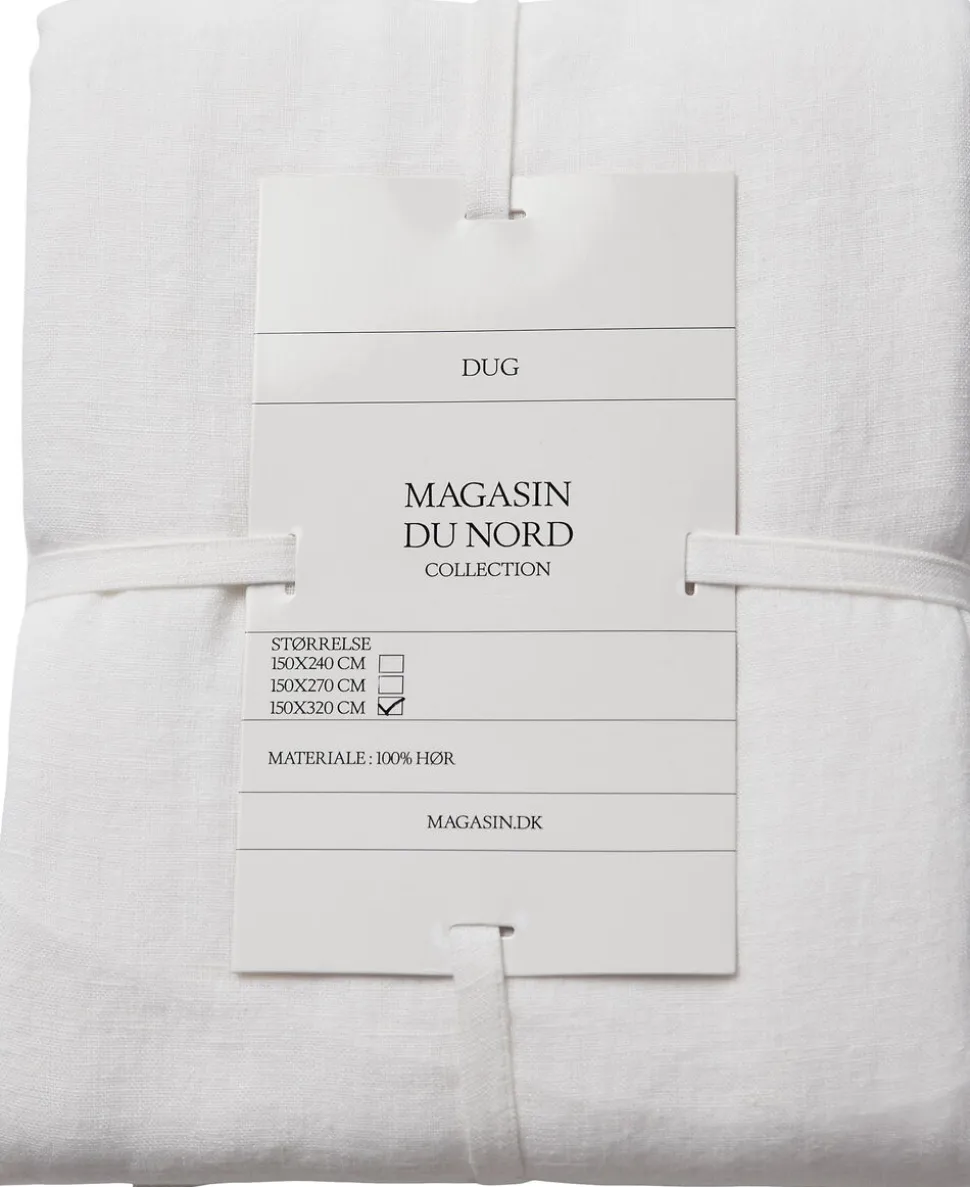 Dug fra Magasin du Nord Collection i den blødeste kvalitet af 100% hør med OEKO-TEX® STANDARD 100-certificering. Dugen måler 150x320cm og er en del af ‘Magasin du Nord 100% hør’-serien, der med sit simple udtryk, klare linjer og stilsikre farvepalet er et luksuriøst valg til hverdagen. Hør er et slidstærkt kvalitetsmateriale med en lang holdbarhed, og som blot bliver smukkere og blødere for hver vask.