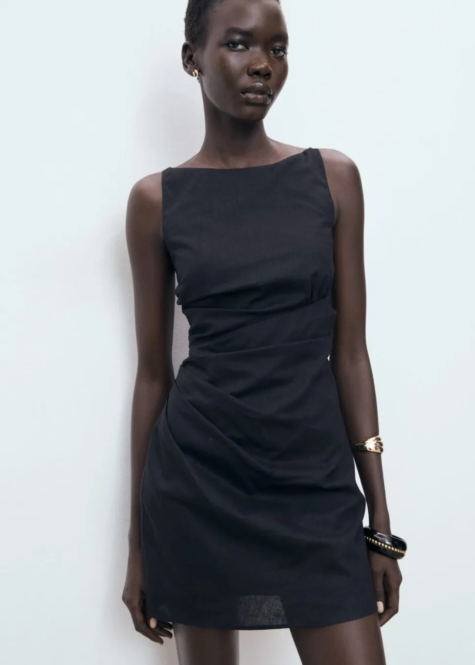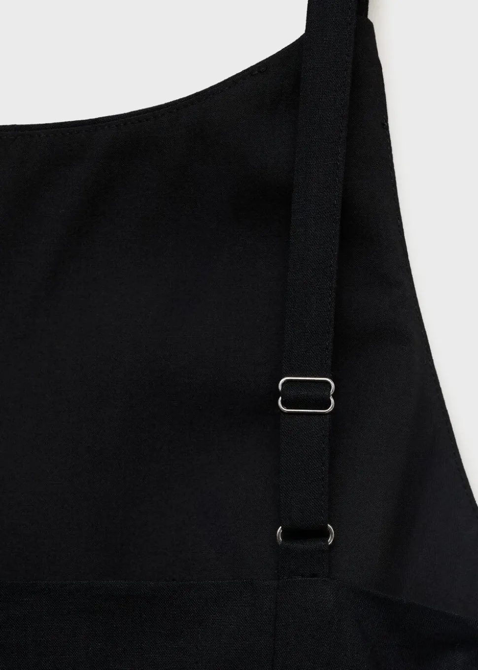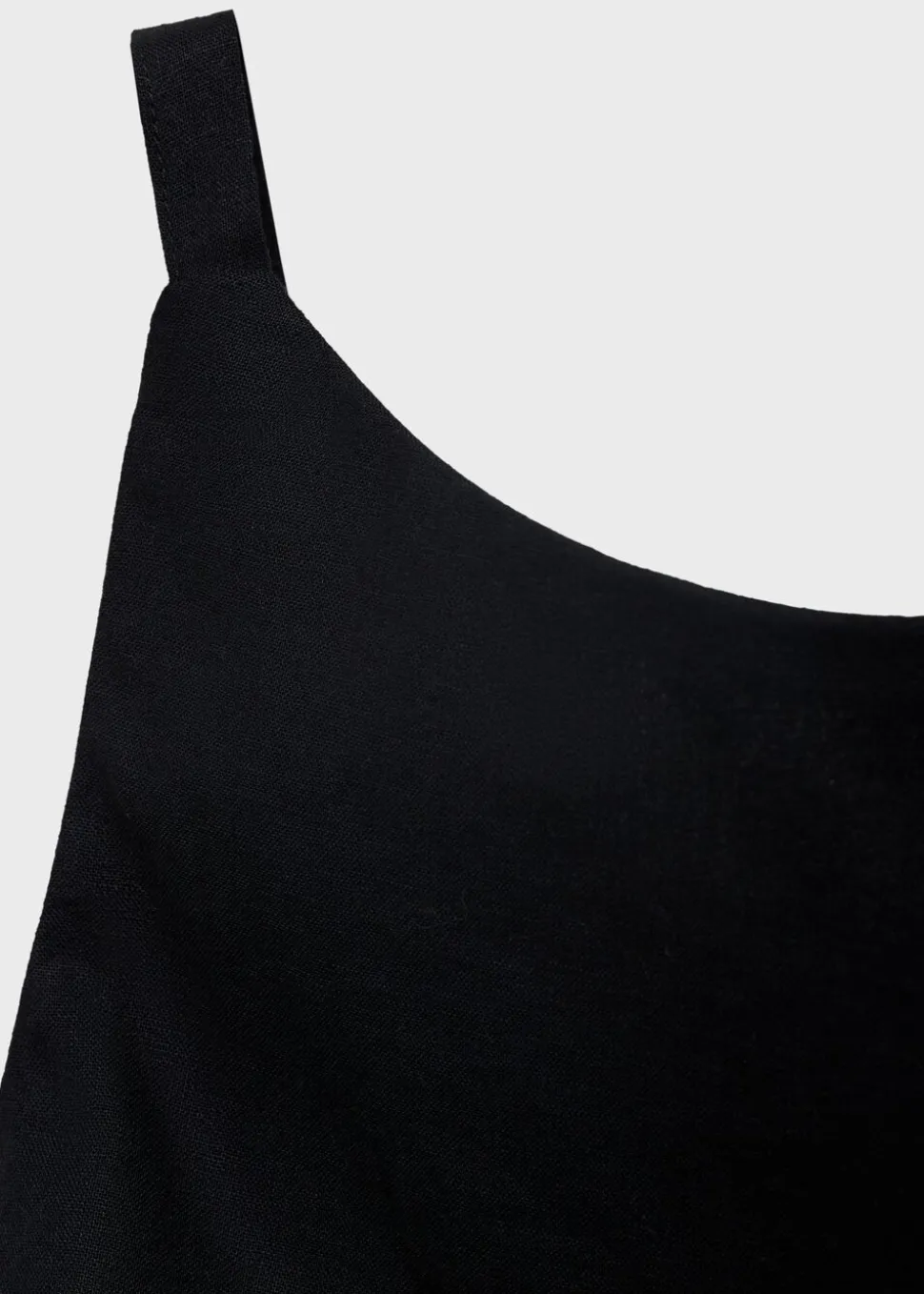 Hør- og bomuldsblanding, kort Design, barbermaskinet Design, bådhals, ærmeløs, tynde justerbare stropper, lynlås i siden, indvendig foring, blå farve er en Exclusive online.
