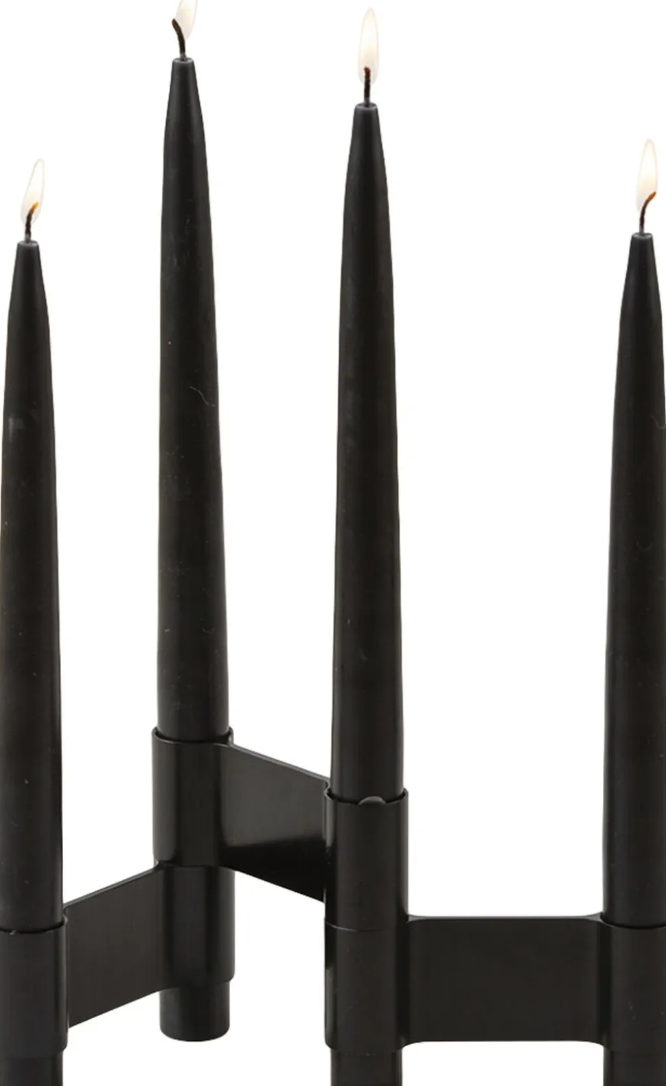 Serien af LINK lysestager er en kollektion af modulære stager, der kan stå enkeltvis eller sættes sammen til en større stage. Lysestagerne er lavet af aluminium og denne variant er i farven sort. EN SKULPTUREL LYSESTAGELINK stagen fås her i sort aluminium, og har et stilrent og enkelt udtryk. Selve stagen er 4 cm høj og kan derfor sagtens bruges på spisebordet, du kan nemt justere bredden og volumen på lysetstagen ved at flytte på modulerne. Med den skulpturelle form står den også flot i sig selv, helt alene som enkelt LINK eller sammensat af flere moduler. INDRET MED METALLER Forsøg dig frem i indretningen med metaller. Materialet aluminium er et stilrent og smagfuldt materiale, der kan kombineres med mange andre objekter. Prøv dig frem og skab et stilleben med LINK stagen kombineret med lidt loppefund eller en glasvase, f.eks Standing bubble der med sin runde form vil bløde det rene udtryk lidt op. Med LINK stagen kan du skabe dit helt eget udtryk – modulerne sættes nemt sammen og man kan derfor også nemt ændre udtrykket når behovet for fornyelse melder sig. Man kan også sætte den sorte stage sammen med modulerne af messing eller sølv. Stagen findes i 4 forskellige anodiseringer – sort, mat guld, mat sølv og blank sølv.PAKKEN INDEHOLDERDu får 3 LINKS moduler pr pakke, hvilket giver plads til 4 lys. Du kan desværre ikke tilkøbe enkle links, da de er pakket i sæt af 3.MÅLStagen har standardmål og passer derfor eksempelvis til det klassiske kronelys. Du kan også bruges vores nye farvede glaslys.FARVE: Sort HØJDE: 40 MMLÆNGDE: 110 MMDIAMETER på røret: 23 MMVÆGT: 0,375 KG LINK kommer i en diskret papæske så de let kan pakkes og sendes, der er 3 moduler pr. pakke. Lysestagen er lavet af overfladebehandlet aluminium. Behandlingen beskytter metallet mod rust og UV stråler, lysestagen vil derfor beholde sin smukke glans og grå farve over tid.Studio About er et dansk designstudio og alle produkter er designet af arkitekt Mikkel Lang Mikkelsen.