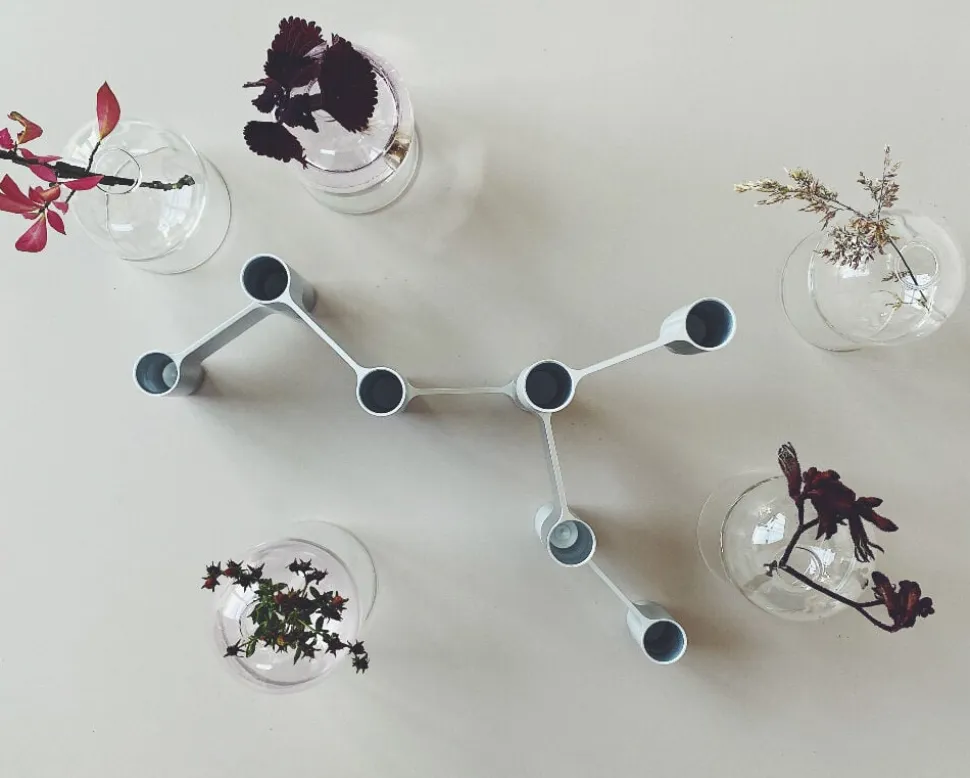 LINK lysestagerne er en kollektion af modulære stager, der kan stå enkeltvis eller sættes sammen til en større stage. Lysestagerne er lavet af aluminium og designet af arkitekt Mikkel Lang Mikkelsen.Den skulpturelle lysestage fås her i blank sølv, der med sit enkle og moderne udtryk passer ind i de fleste nordiske hjem. INDRET MED METALLERLINK lysestagen består af 3 moduler, der sættes sammen til én stage. Man har derfor fuld frihed til at skabe sin egen stage – enten med de 3 moduler der medfølger i denne pakke eller ved at sætte flere stager sammen. Lysestagen fås også i mat guld, sort og mat sølv. Man kan sagtens sammensætte forskellige metaller for et anderledes udtryk og variation. De smukke metaller indgår smukt i indretningen og i et miks med træ og tekstiler giver de både varme og personlighed. Lysestagerne kan bruges med et klassisk kronelys eller med lange slanke lys – vælg lys i din yndlingsfarve og brug dem i et lille stilleben eller på spisebordet, hvor stagens højde gør den meget velegnet. For et stramt og stilrent udtryk kan du bruge vores olielys lavet i glas, glassets gennemsigtighed giver stagen et mere blødt udtryk. PAKKEN INDEHOLDERDu får 3 LINKS moduler pr pakke, hvilket giver plads til 4 lys. Du kan desværre ikke tilkøbe enkle links, da de er pakket i sæt af 3.Stagen har standardmål og passer derfor eksempelvis til det klassiske kronelys. Du kan også bruges vores nye farvede glaslys.MÅLFARVE: Poleret grå HØJDE: 40 MMLÆNGDE: 110 MMDIAMETER på røret: Ø 23 MMVÆGT inkl. emballage : 0,375 KGStagen kommer i en enkel og stilren æske og kan derfor nemt sendes og fragtes. Lysestagen er lavet af overfladebehandlet aluminium. Behandlingen beskytter metallet mod rust og UV stråler og vasen vil derfor beholde sin smukke glans og blanke grå farve og holde sig pæn over tid.Studio About er et dansk designstudio og alle produkter er designet af arkitekt Mikkel Lang Mikkelsen.