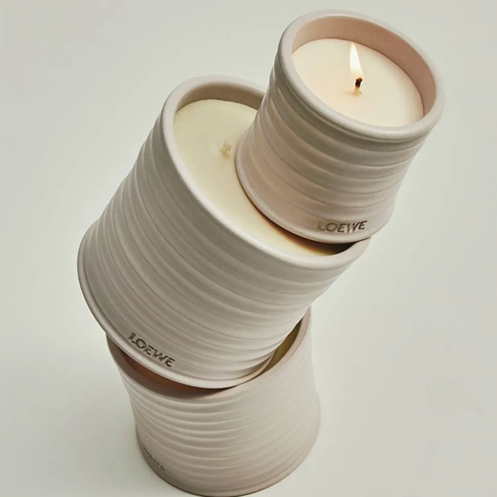 Lyset er fremstillet af naturlig voks med en enkelt bomuldsvæge og præsenteres i en glaseret terrakottaskål med præget bund. Alle LOEWE Home Scents-produkter er olfaktoriske fortolkninger af naturens mest autentiske og rene aromaer. Hvert lys er unikt takket være sit håndlavede præg.