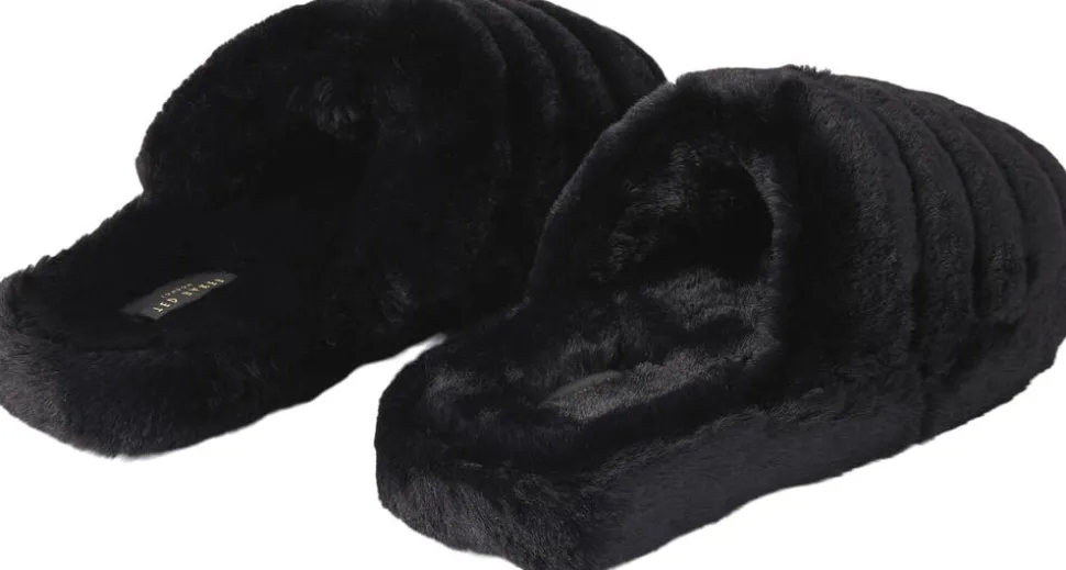 Brighten your morning with these cute LOPSEY faux fur mule slippers !