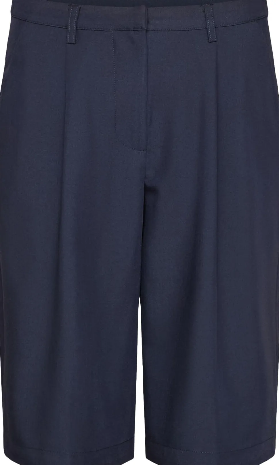 er et par bermuda shorts med en løs pasform og bredde i benene, som ender omkring knæene. Shortsne har en høj talje med bæltestropper. Modellen har en str. S på og er 179 cm høj.