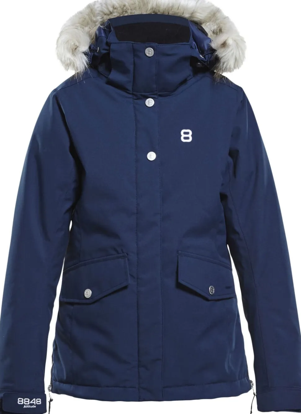 Lykke Jacket fra 8848 til børn, byder på et mere delikat og faconsyet design, men stadig ikke uden den vind- og vandtætte kvaltiet, tapet sømme og gode åndbarhed, der sikrer et fantastisk klima inden under jakken. Justerbar og aftagelig hætte samt pels, lader dig skifte udseendet på jakken efter behov og humør – omkring håndleddene finder du velcro.