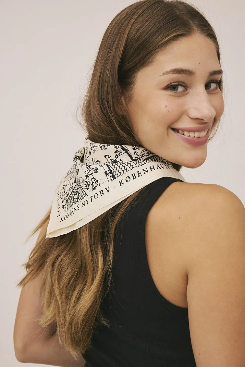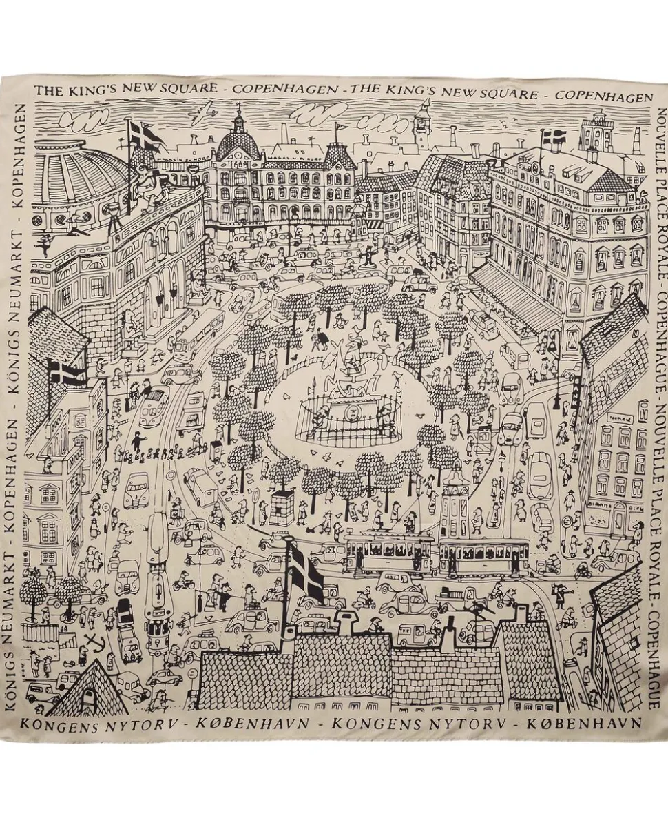 Tørklæde fra Magasin du Nord Collection i den smukkeste kvalitet af 100% fin silke med et ikonisk print af Kongen Nytorv i København. Derudover er tørklædet enkelt i modellen med en klassisk, kvadratisk facon samt fine kanter. Et rigtig flot tørklæde af den bedste kvalitet. Fås i flere størrelser og farver.