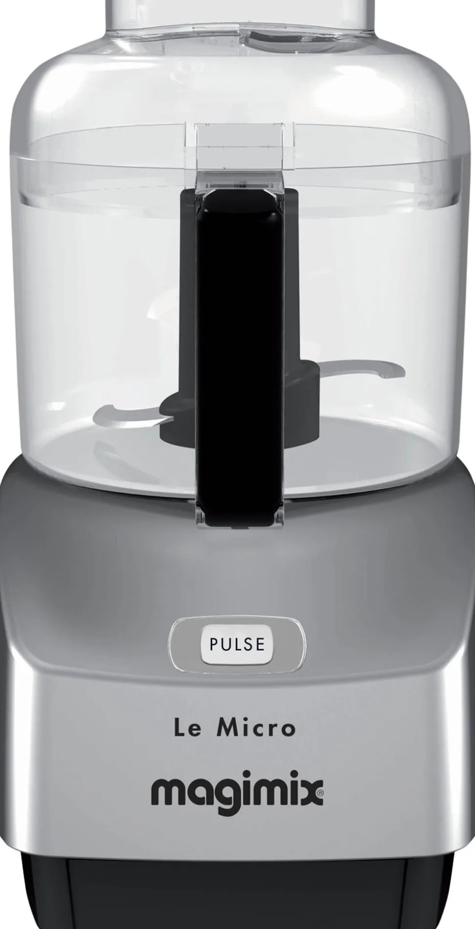 Magimix mini-foodprocessor er effektiv, stilfuld og støjsvag. Den optager kun lidt plads på køkkenbordet og har et så flot design, at du gerne lader den stå fremme. Betjeningen er enkel. Låget har to åbninger til påfyldning af henholdsvis flydende og faste ingredienser, sættes let på og tages lige så nemt af. På fronten findes en enkelt knap til at aktivere både pulse-funktion og kontinuerlig kørsel.