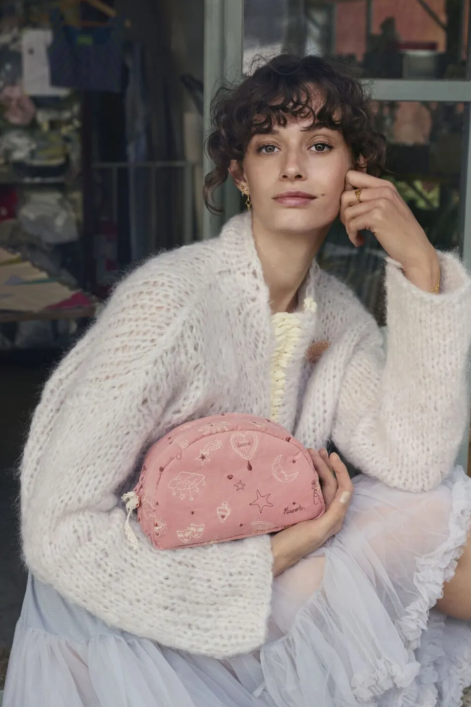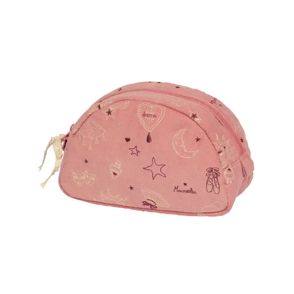 Mærk scenens fortryllende energi med denne makeup taske, der med sit mønster af stjerner, hjerter, halvmåner og lokkende vifter, bringer magi til din makeuprutine.