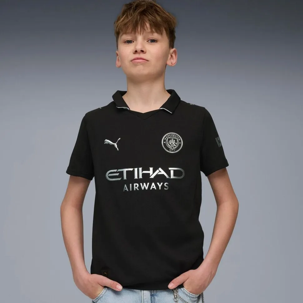 Manchester City 25/26 Udebanetrøje fra PUMA kombinerer ikonisk historie med moderne teknologi. Inspireret af klubbens tidlige kit i sort design med metalliske detaljer, hylder trøjen Citys rødder og innovative ånd. Fremstillet med PUMA dryCELL-teknologi, der effektivt transporterer sved væk og sikrer optimal komfort under intens træning og kamp. Lavet med mindst 95% genanvendte materialer via RE:FIBRE-programmet, der understøtter bæredygtighed. Den lette, åndbare pasform giver fuld bevægelsesfrihed ideel til både fans og aktive. Vælg denne trøje for en stilfuld, funktionel hyldest til Manchester Citys arv og fremtid.