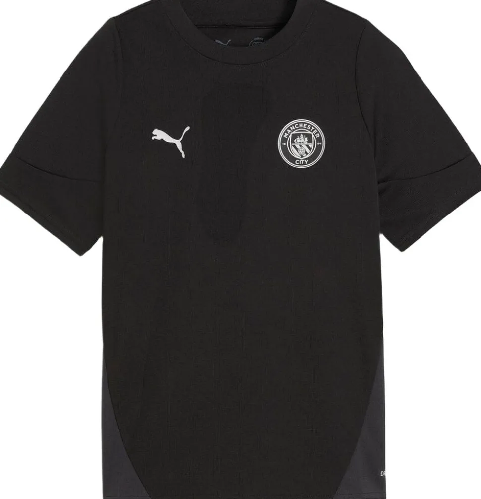 Manchester City Trænings T-shirt fra Puma kombinerer funktionalitet og stil, perfekt til både træning og fritid. Fremstillet i let, åndbart polyester med PUMA dryCELL-teknologi, der effektivt leder sved væk og holder dig tør under intens aktivitet. Med en regular fit og korte ærmer sikrer den fuld bevægelsesfrihed og komfort. T-shirten er dekoreret med det officielle Manchester City klublogo og PUMA Cat-logo, som signalerer ægte fanstolthed. Desuden består materialet af mindst 20% genanvendt polyester, hvilket gør den til et bæredygtigt valg. Ideel til dedikerede fans, der ønsker både performance og ikonisk design.