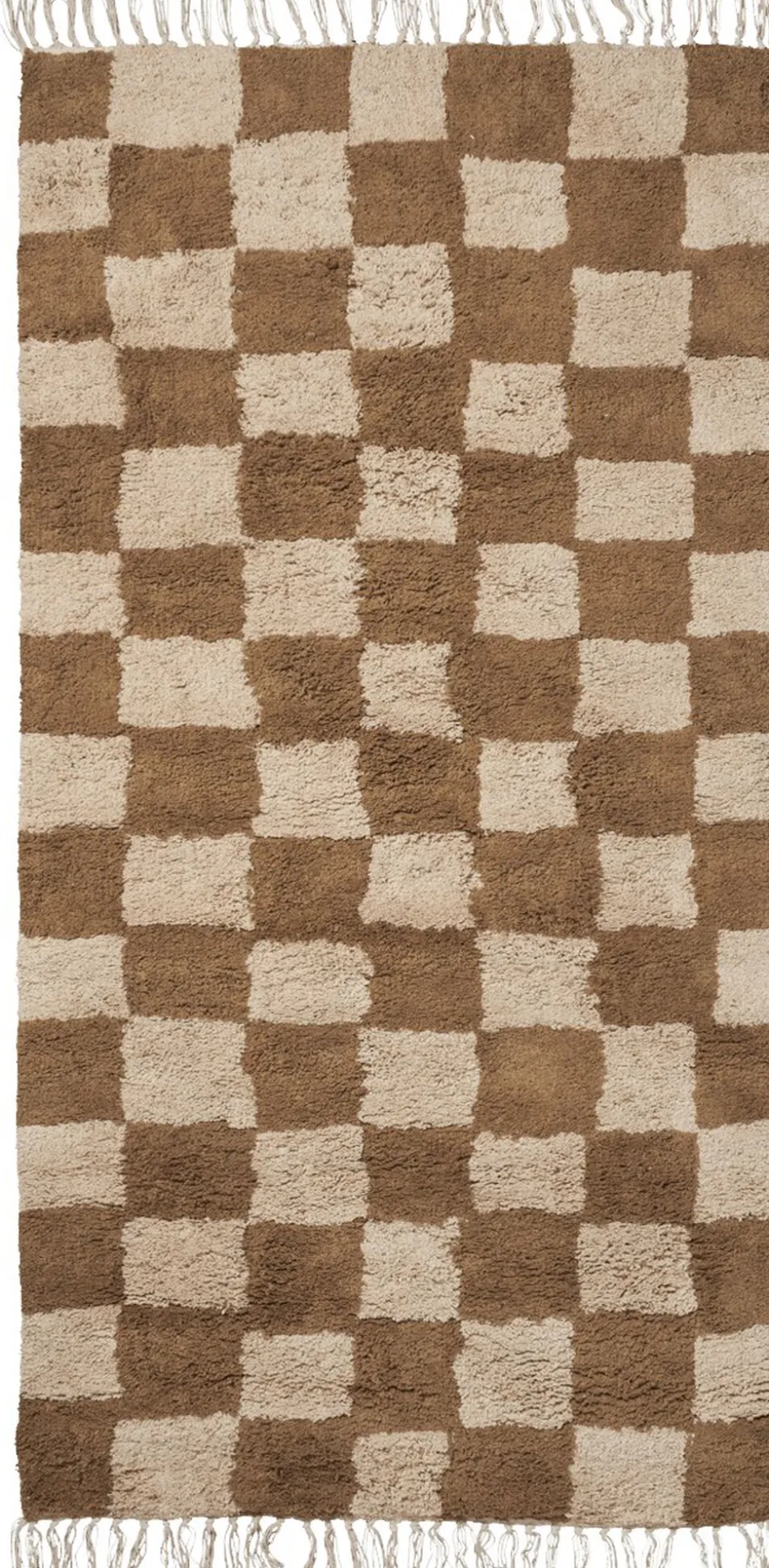 Mara Washable Rug er en moderne fortolkning af et klassisk tæppe med det dristige ternede mønster og de dekorative frynser. Tæppet er håndtuftet af GOTS certificeret, økologisk bomuld og har et iøjnefaldende, men afbalanceret design, der vil tilføre en legesyg kontrast til ethvert rum.