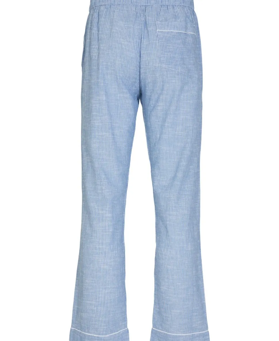 Bukser fra Magasin du Nord Collection i den blødeste kvalitet af økologisk, GOTS-certificeret bomuld. Bukserne er enkle i modellen med elastik og snøre i taljen, sidelommer samt fine piping-detaljer i de vidde bukseben. Økologisk bomuld kommer fra landbrug, hvor man arbejder med naturen på en måde så både økosystemer og biodiversitet opretholdes. Det betyder, at der ikke benyttes giftige kemikalier, at vandforbruget begrænses og at der i højere grad anvendes regnvand i produktionen. Når du vælger økologisk bomuld, er du derfor med til at værne om jordens ve og vel.