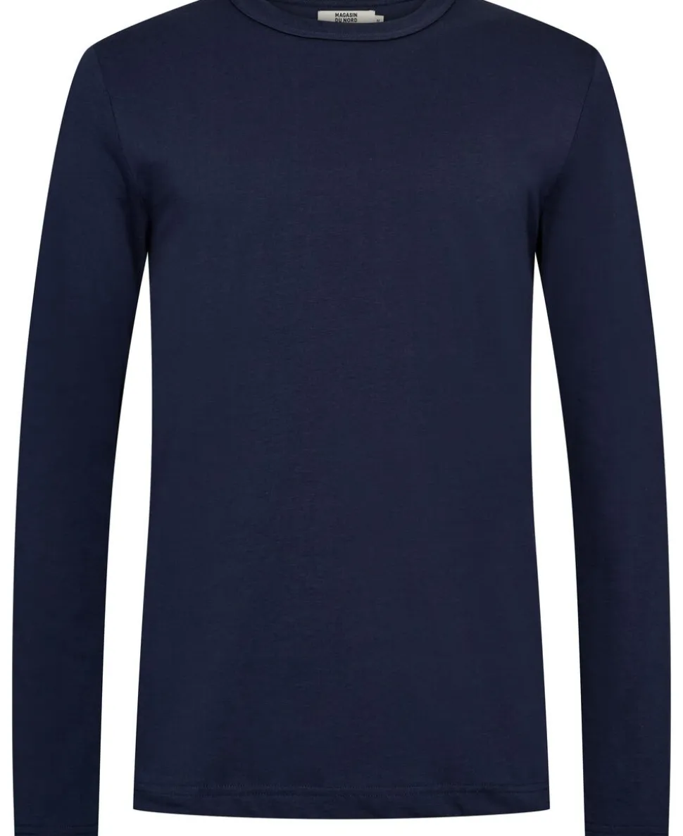 Bluse fra Magasin du Nord Collection i den blødeste kvalitet af 100% økologisk bomuld med GOTS-certificering. Blusen er enkel i modellen med lange ærmer, en rund halsudskæring med ribkant samt en løs pasform. En casual bluse i den lækreste kvalitet.
