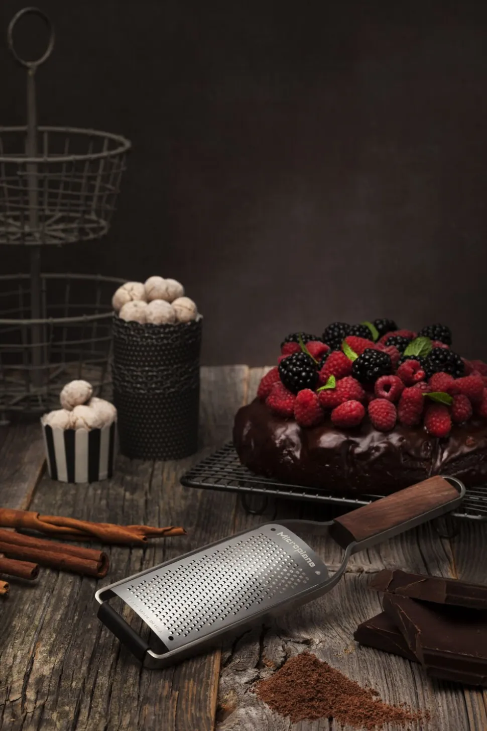 Som med alle andre rivejern fra Microplane er det imidlertid det skarpe ætsede skær, som er det vigtigste. I modsætning til traditionelle stansede rivejern forbliver skærene på Microplane rivejern barberbladsskarpe. Leveres med sikkerhedscover. Rammen er fremstillet af kraftigt, rustfrit stål, og grebet er i amerikansk valnød.