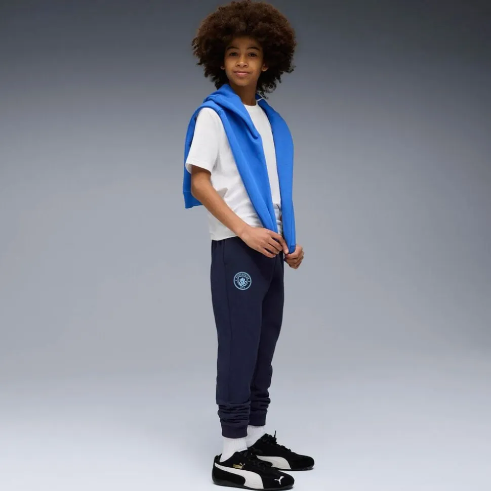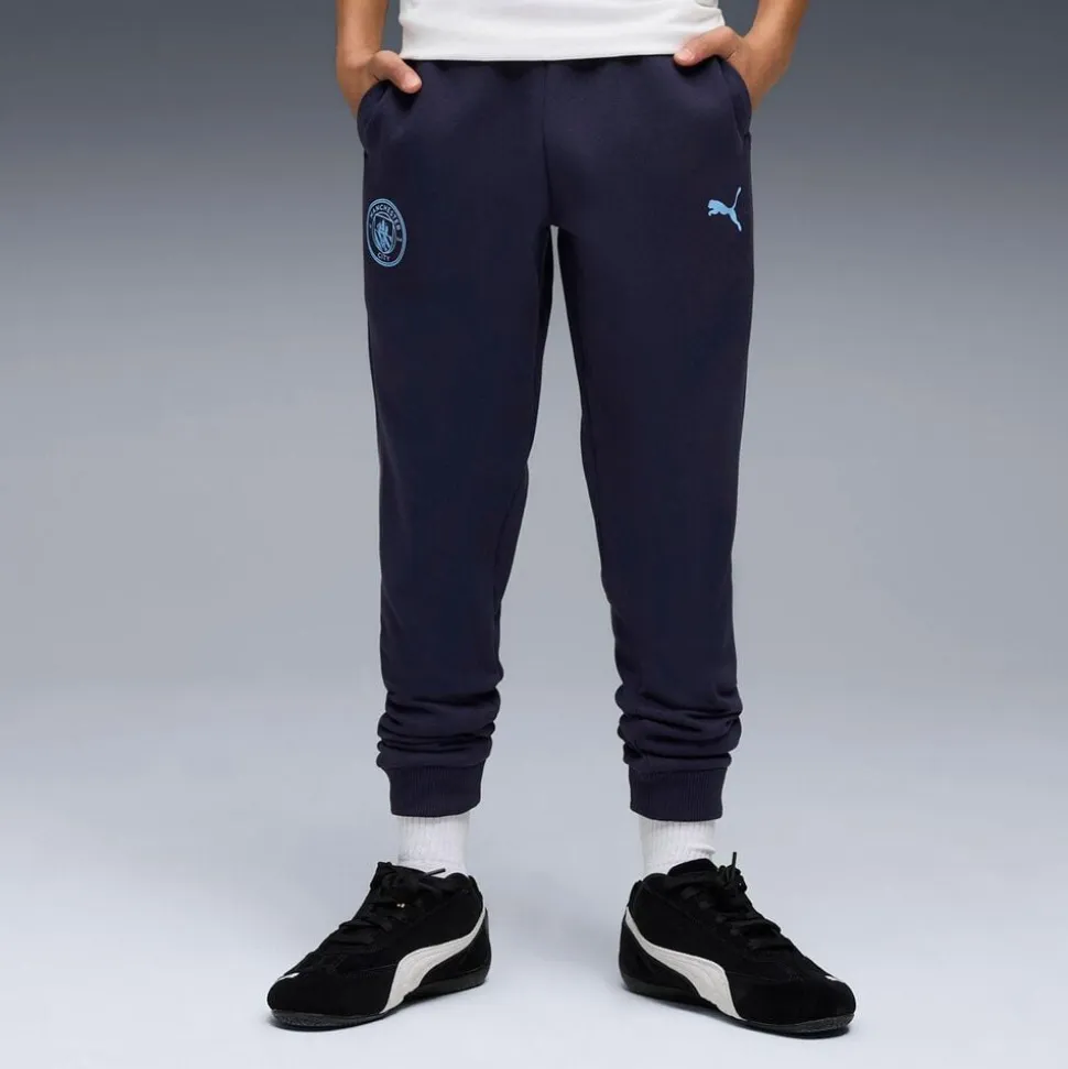 Manchester City Bukser fra Puma kombinerer sporty elegance med funktionalitet i et slim fit design, der sikrer optimal pasform og bevægelsesfrihed. Med dryCELL teknologi transporteres sved effektivt væk, så du forbliver tør og komfortabel under træning eller hverdagens aktiviteter. Bukserne er fremstillet af mindst 50% genanvendte materialer, hvilket gør dem til et bæredygtigt valg. De har praktiske sidelommer med lynlås og ikonisk klub- og Puma-branding, der viser din loyalitet til Manchester City med stil. Perfekte til træning, kampdag eller afslappet brug. Klar til at træne som en mester? Vælg Puma Manchester City bukser!