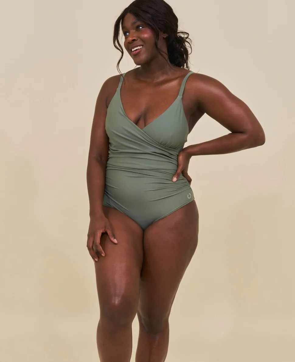 Medewi draperet badedragt er designet med en smuk draperet slå-om skæring. Dette gør den flatterende på alle kropstyper og kan også fungere perfekt som en body sammen med et par bukser eller en nederdel. Derudover har den brede justerbare stropper, som sikrer dig et perfekt fit. Medewi er syet med 2-lags stof af høj kvalitet, som føles fantastisk, er åndbart mod huden og samtidig støtter alle de rigtige steder. Produktet er skabt af ECONYL® regenereret nylon blandet med elastan.