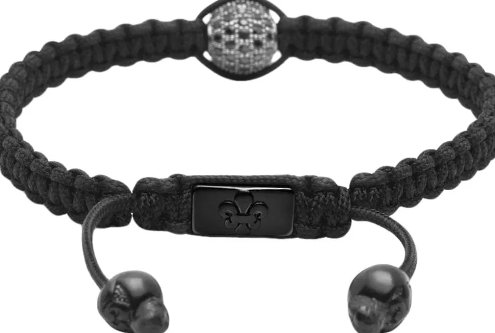 String-armbånd med sort nylonstreng. Lås og perler i rustfrit stål. Håndlavet i Los Angeles