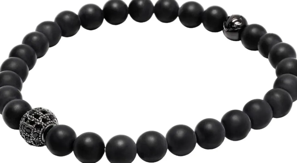 Armbånd med 6 mm matte Onyx-perler med sort CZ-diamantperle. Håndlavet i Los Angeles