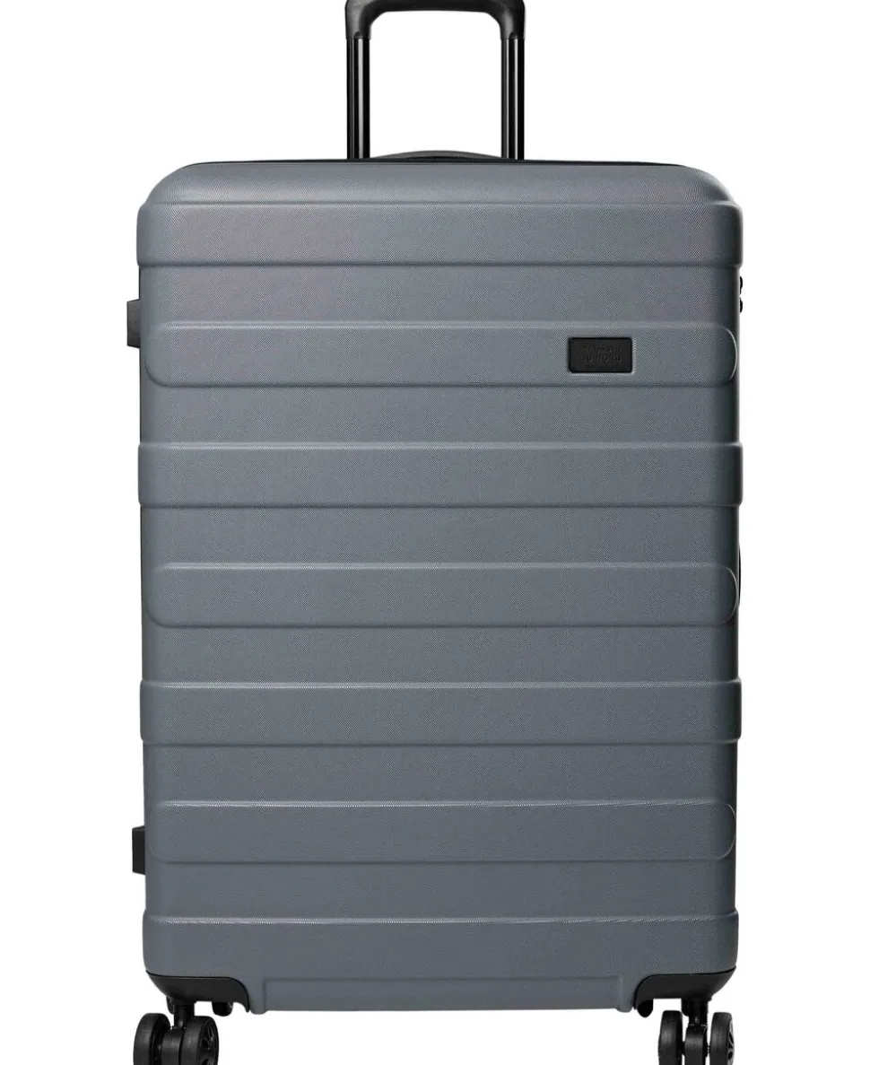 Kuffert fra Magasin du Nord Collection i en kvalitet af 100% ABS-plast, der sikrer en robust skal. Kufferten er fuldt foret i genanvendt RPET Polyester og består af et stort rum med lynlåslukning, flere indvendige lommer samt en indvendig strop, der sikrer at kuffertens indhold er fastgjort. Derudover har kufferten en TSA-kompatibel lås, en diskret logodetalje på fronten, et håndtag i side og top. Fire robuste og lette 360° spinnerhjul til nem manøvrering, dækkene er lavet i et holdbart materiale, der ruller jævnt på alle overflader. Samt et flertrins teleskophåndtag. 74x53x29 cm