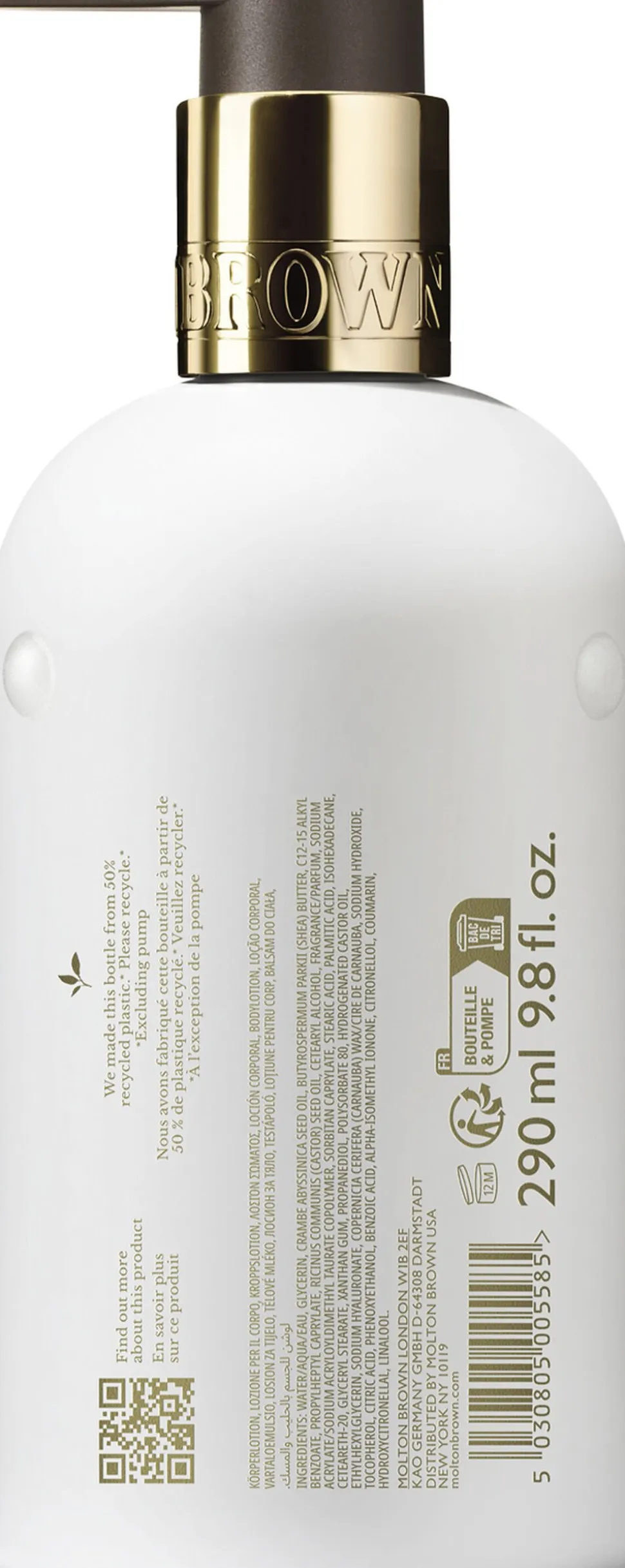 En nostalgisk drøm af duften af mælk, og et tæppe af cremet, beroligende noter, der åbner sig i denne plejende bodylotion. En blødgørende bodylotion i en afrundet, lækker flaske, med elegant print af guldtråde, der efterlader huden fugtet og behageligt duftende med et cashmere blødt touch.