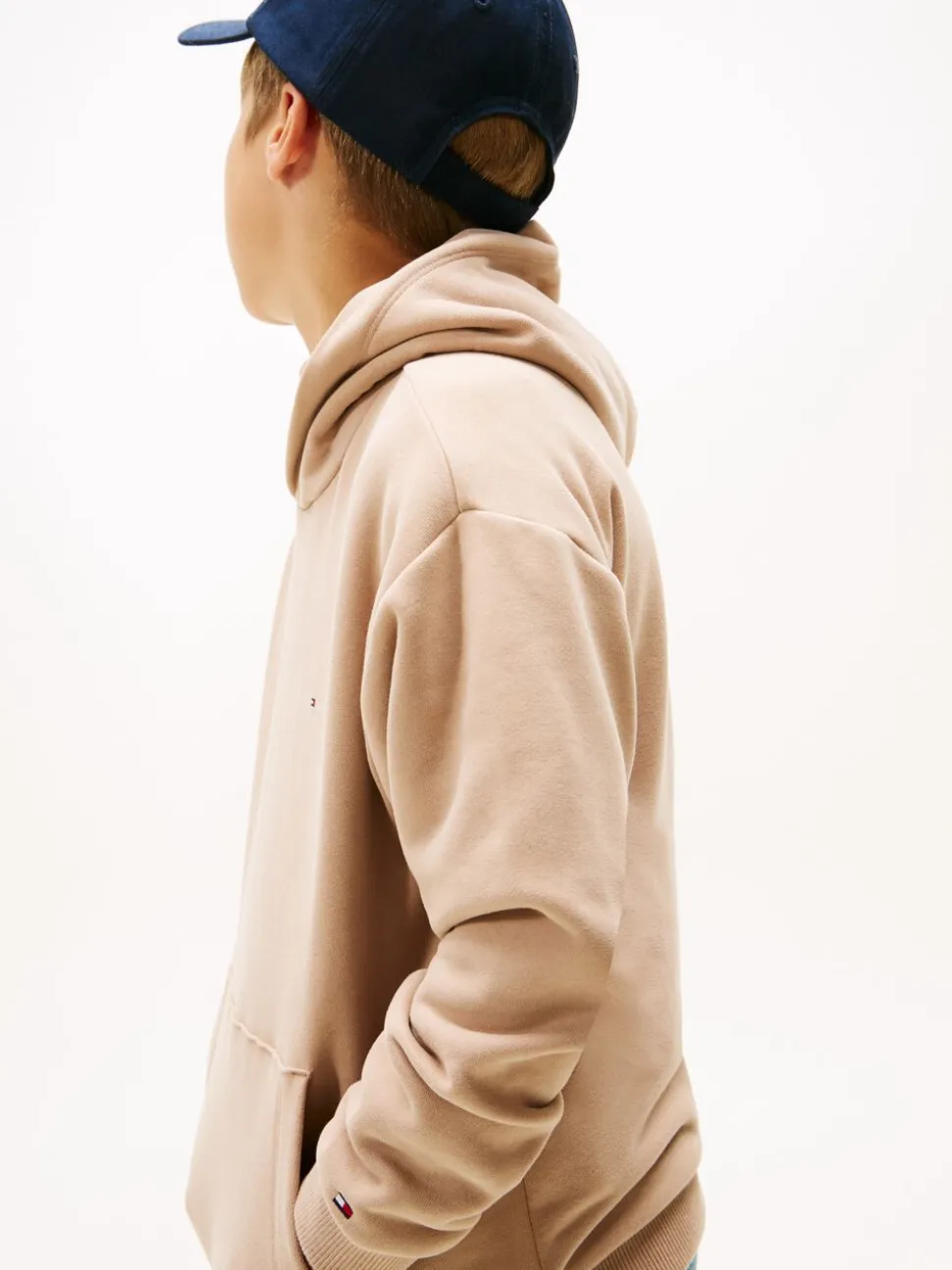 Denne hættetrøje i børstet bomuldsblanding er en uundværlig tilføjelse til enhver weekendgarderobe og har en hyggelig kængurulomme og diskret signaturbranding. Højdepunkterne omfatter børstet bomuldsblandingsfleece, hals med hætte, ribstrikkede manchetter og kant samt en kængurulomme. Tommy Hilfiger-logoet vises på brystet med Tommy Hilfiger-branding og flagbroderi på manchetten. Form og pasform: Almindelig pasform med skrånende skuldre, inklusive køn. Sammensætning og pleje: 80 % bomuld, 20 % polyester