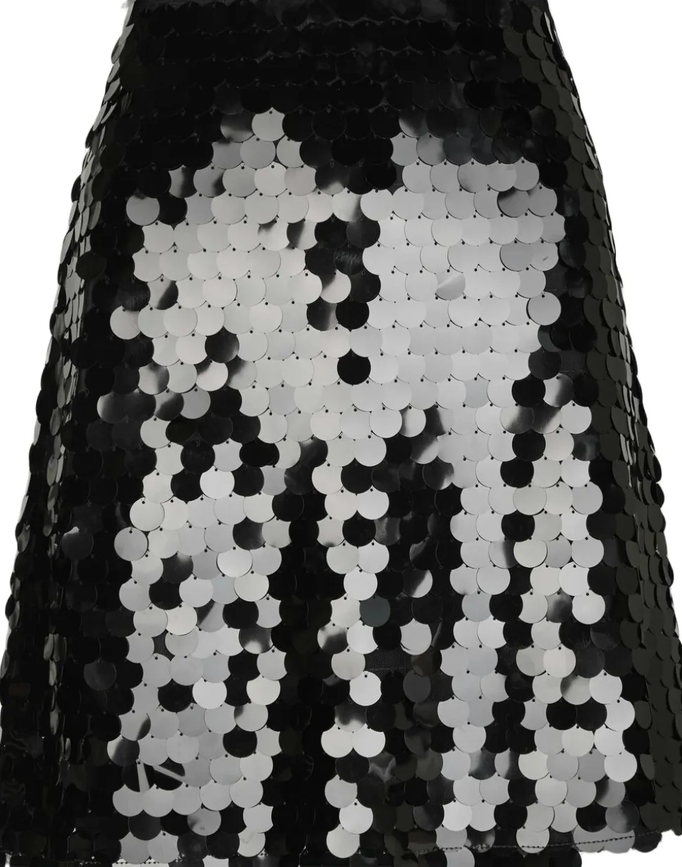 Kort nederdel med pailletter. Nederdelen har indvendig elastik i taljen samt en skjult lynlås i siden. Den er designet med en A-form og har en almindelig pasform. Modellen er iført størrelse 36.