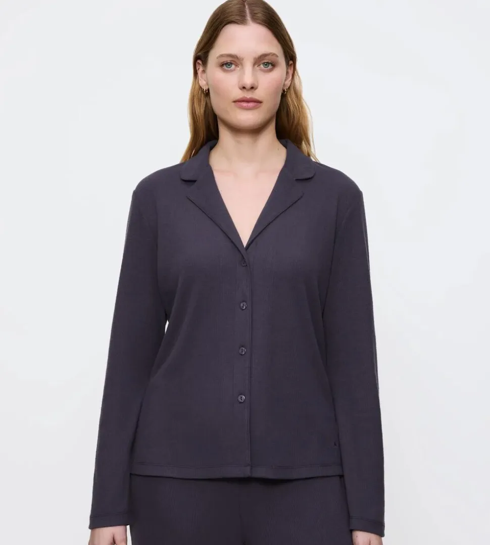 Denne langærmede top kombinerer komfort og stil. Den er et alsidigt lag-på-lag-stykke med knapper hele vejen ned og klassiske krave. Den er fremstillet af en blød, børstet stofblanding af 61 % genbrugspolyester og 33 % certificeret Lenzing-viskose, som sikrer varme og komfort.