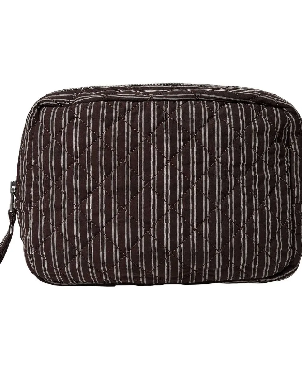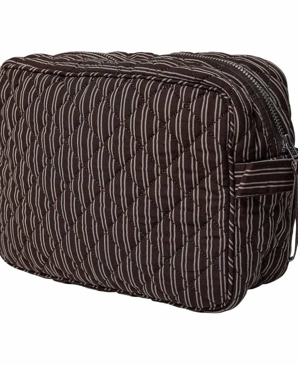 Toilettaske fra Magasin du Nord Collection i den blødeste kvalitet af 80% økologisk bomuld med GOTS-certificering. Toilettasken består af ét stort rum med lynlåslukning samt mindre inderlommer. Derudover har toilettasken fine vatterede syningsdetaljer og et stribet print. En skøn toilettaske i den lækreste kvalitet.