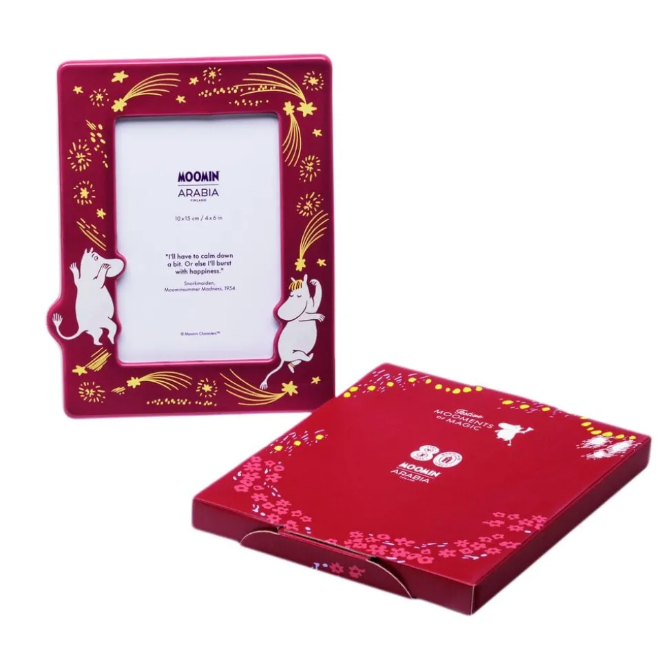 Fejr Mumitroldenes 80-årsjubilæum på en mumitastisk måde med fyrværkeri og pandekager! Denne fotoramme er perfekt til at indfange og vise dine egne festlige øjeblikke. Gør dine minder endnu mere specielle med dette charmerende indslag i din indretning. Moomin Arabia fotoramme 100×150 mm, Festlige øjeblikke